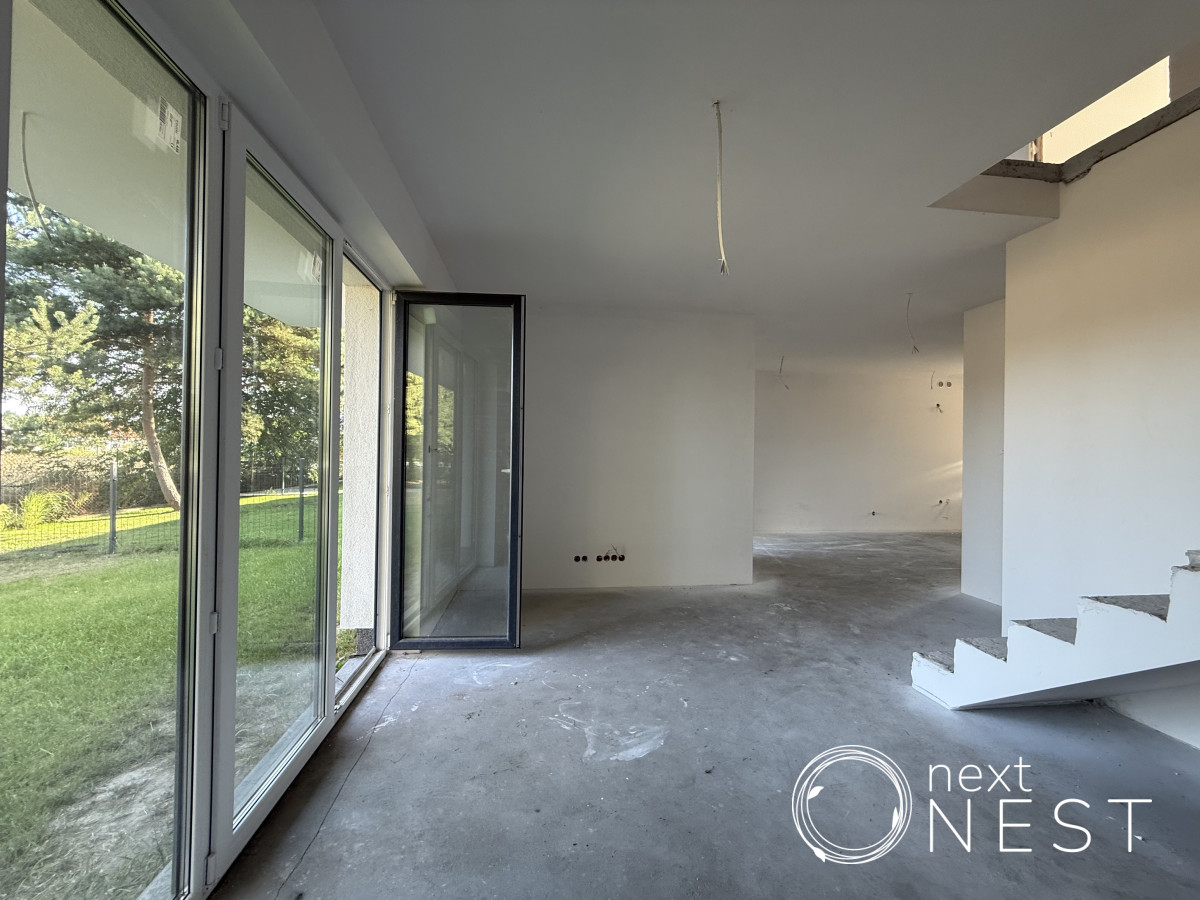 Przedmiotem sprzedaży jest środkowy segment o powierzchni użytkowej 121 m², z dodatkowym poddaszem. Do każdego segmentu przynależy garaż, dodatkowe miejsce postojowe i ogródek.