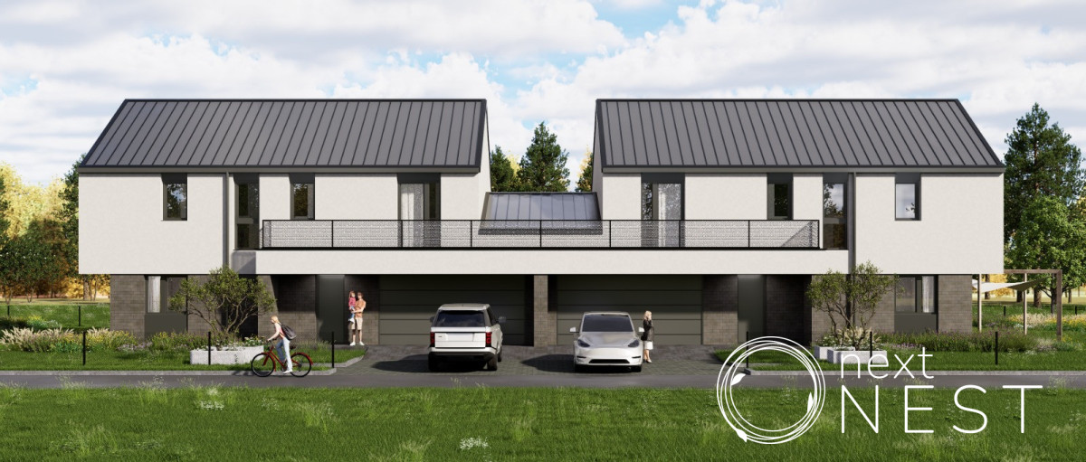 Dom jednorodzinny w zabudowie dwulokalowej (powierzchnia łączna działki pod dwa domy - 1200 m2).