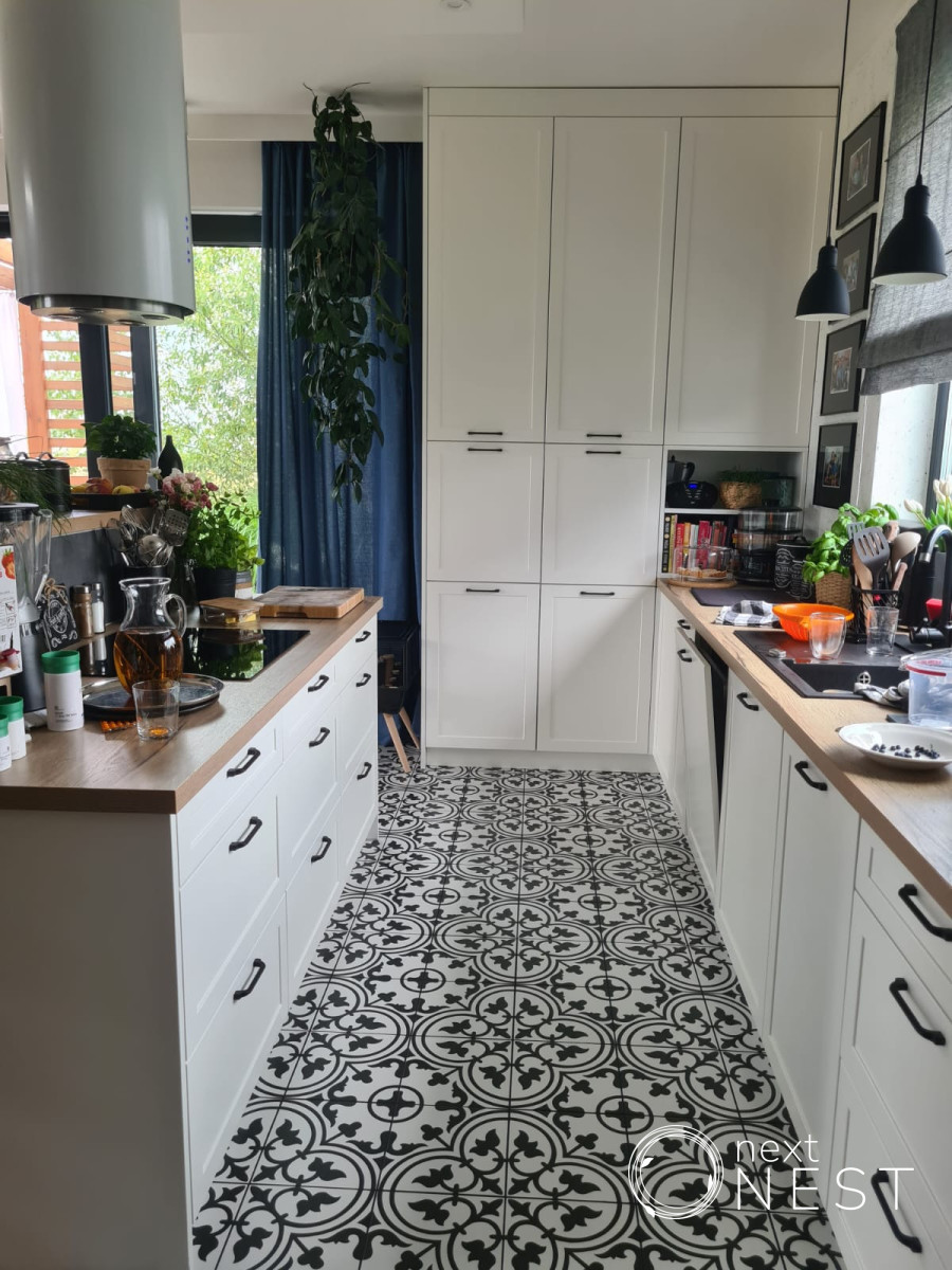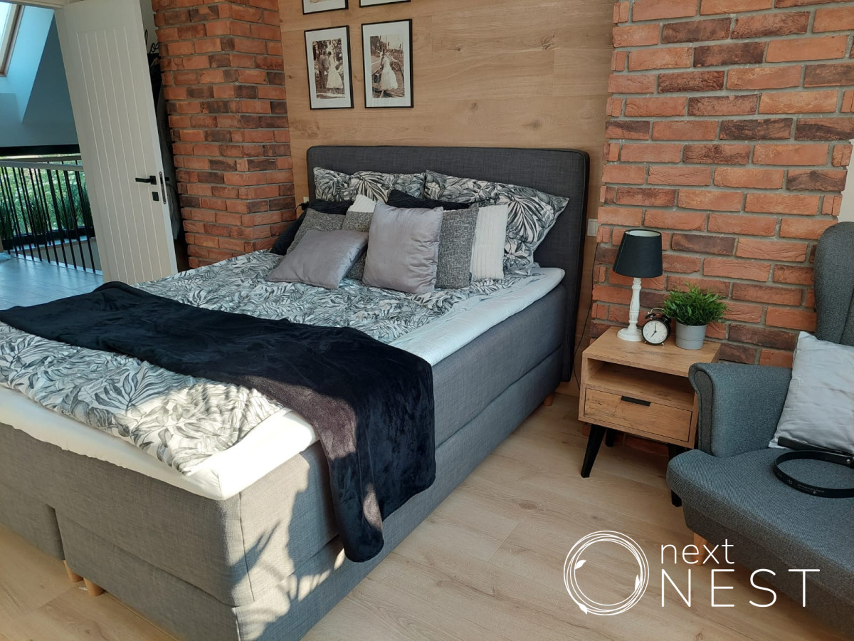 Na parterze domu znajduje się wejście z wiatrołapem i przejściem do łazienki, salon połączony z kuchnią z w pełni wyposażoną wyspą kuchenną i spiżarnią oraz wyjście do ogrodu. Na parterze domu jest również garaż i pomieszczenie techniczne. Piętro stanowią trzy sypialnie, garderoba i dwie łazienki. Na ostatniej kondygnacji znajduje się otwarta przestrzeń do pracy.