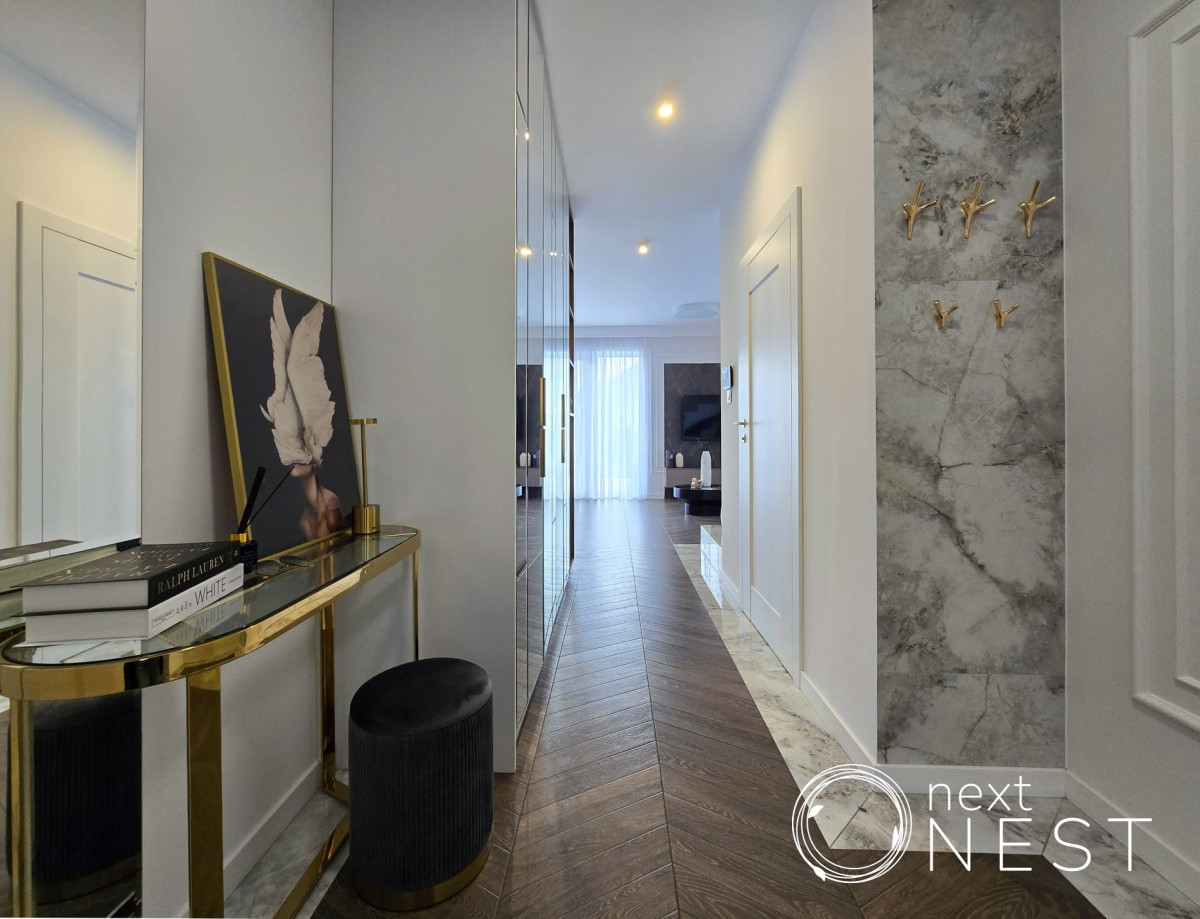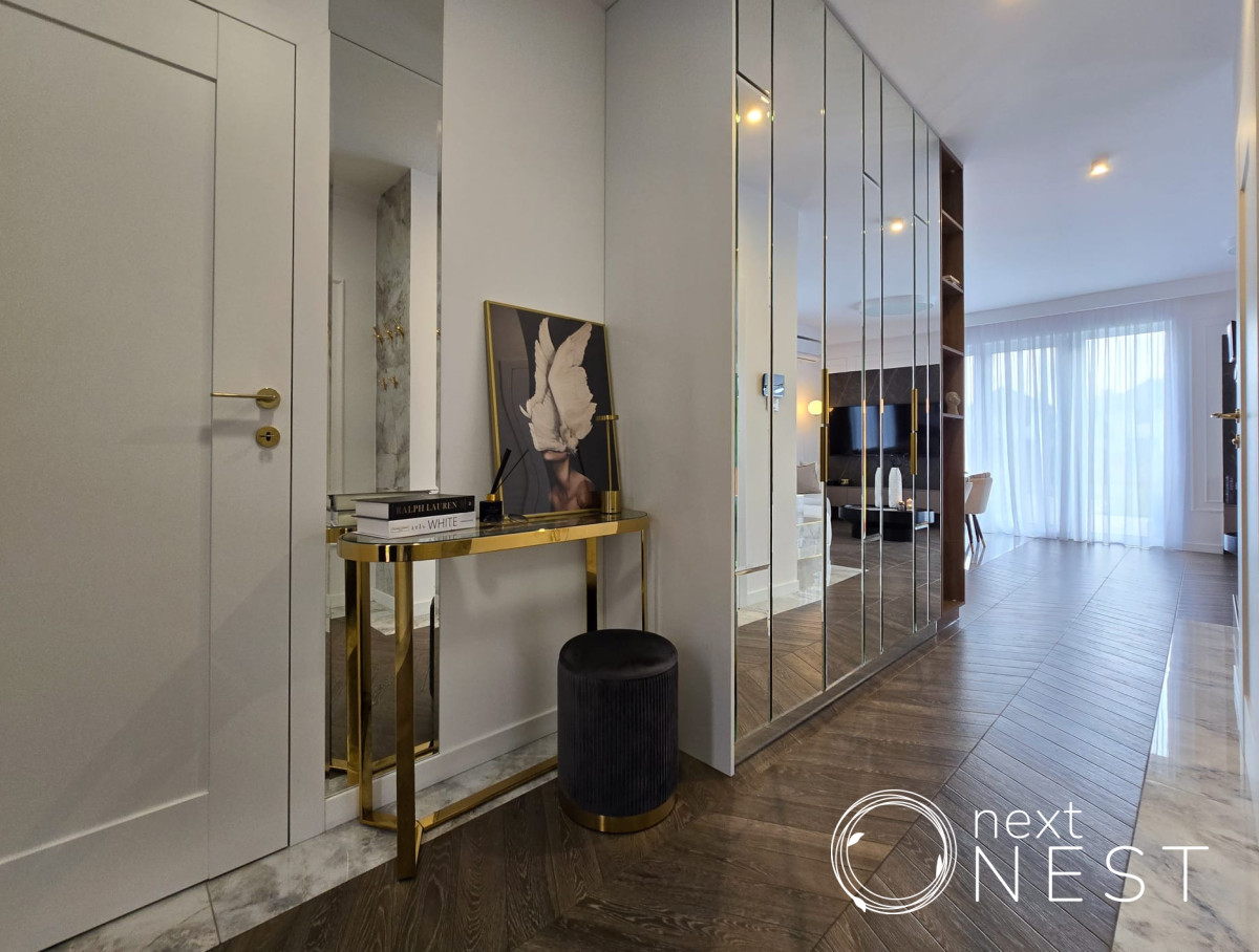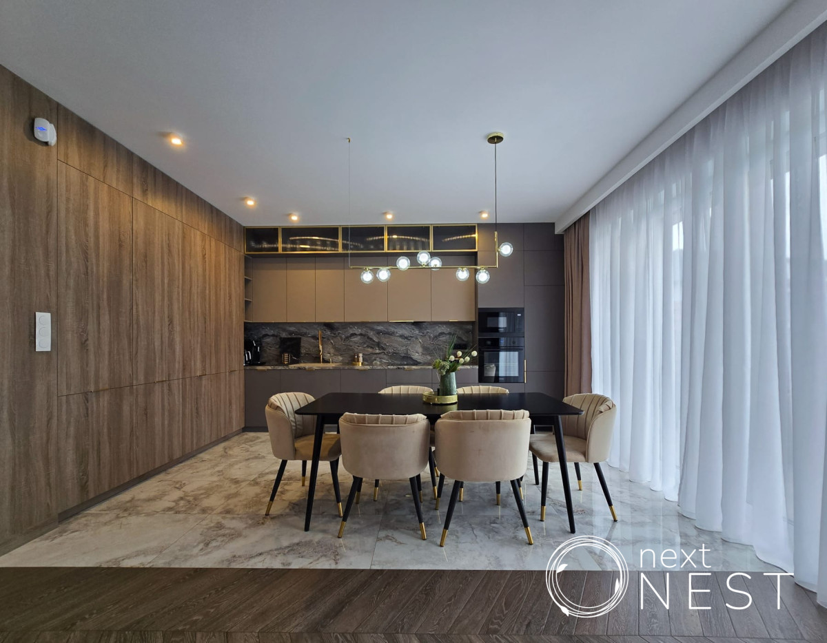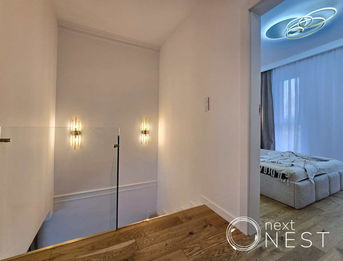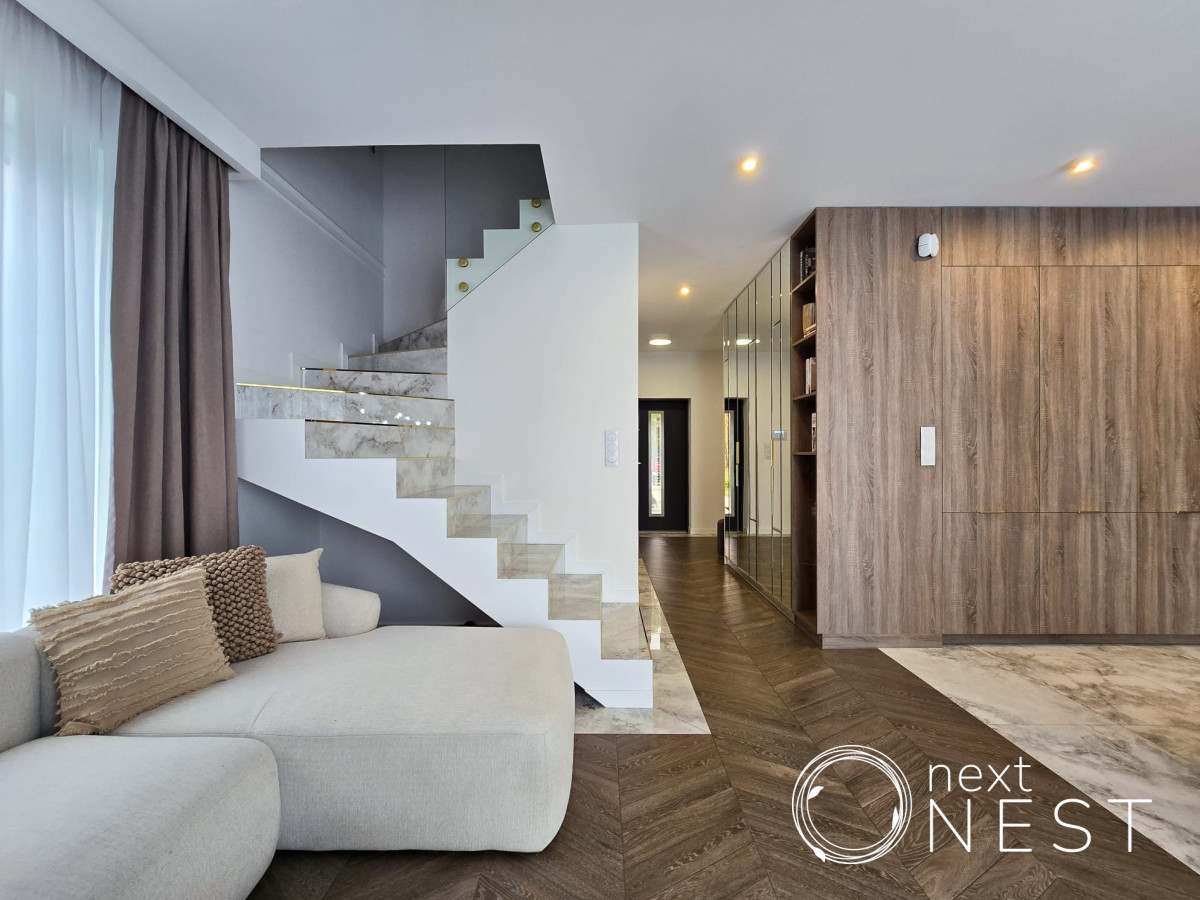 Segment wykończony został materiałami wysokiej jakości. Ogrzewanie pompa ciepła firmy Panasonic. Klimatyzacja na obu poziomach. Dodatkowo alarm oraz kamery.