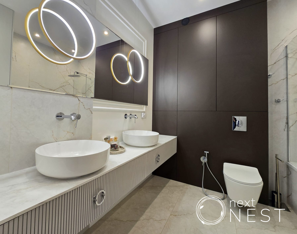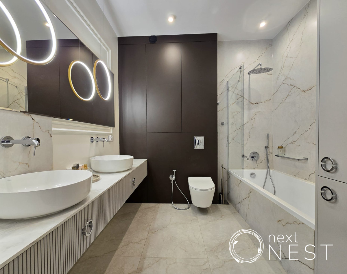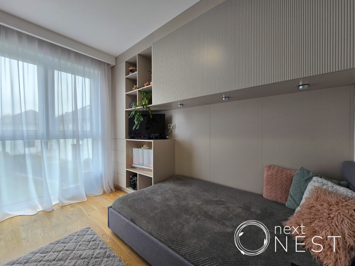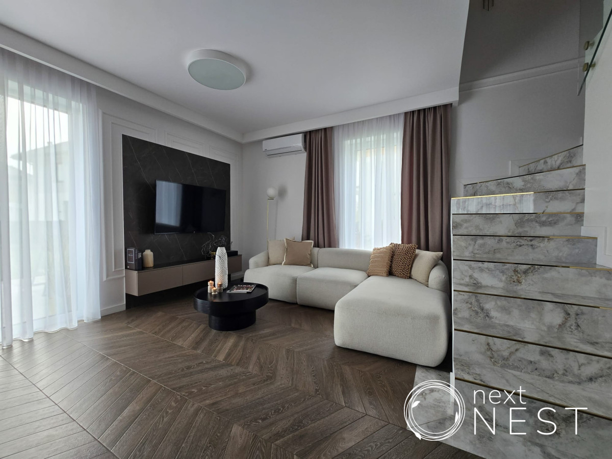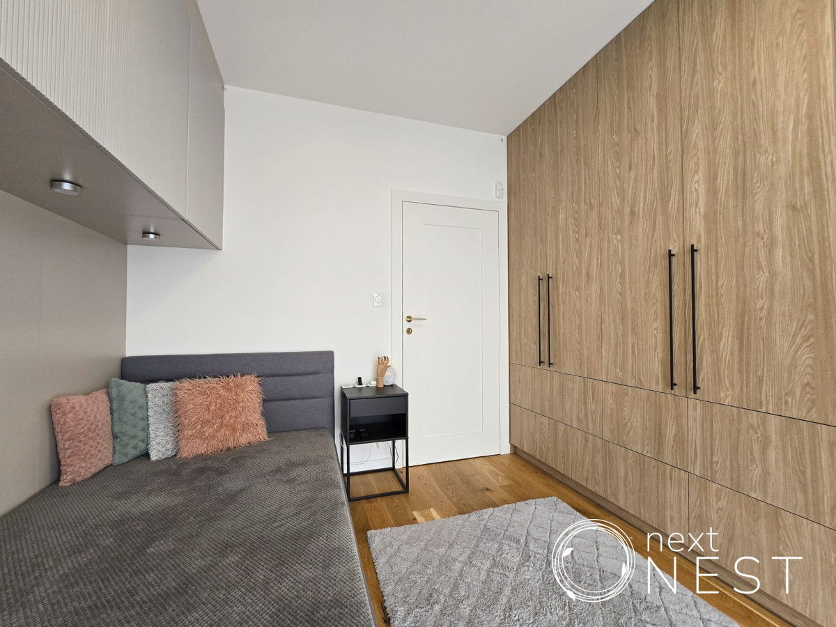 Segment wykończony został materiałami wysokiej jakości. Ogrzewanie pompa ciepła firmy Panasonic. Klimatyzacja na obu poziomach. Dodatkowo alarm oraz kamery.