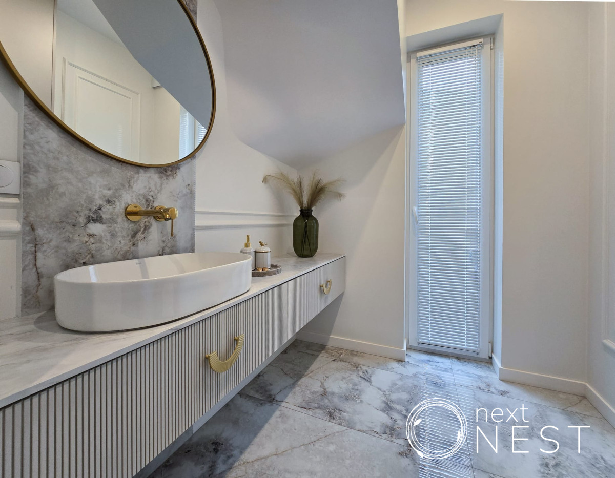 Piętro: trzy sypialnie, łazienka, przestronna garderoba i hol, wysokość pom. 2,70 m.