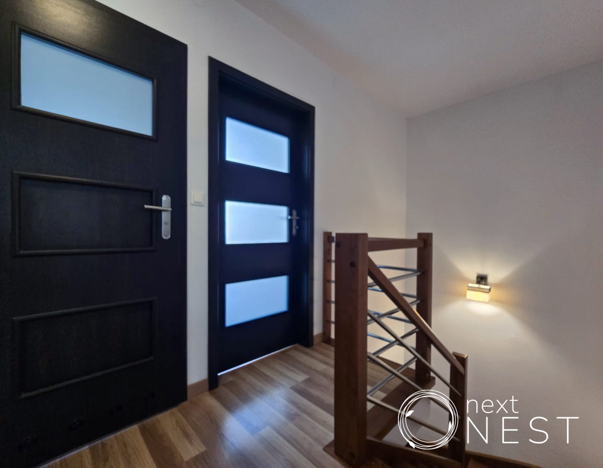 II piętro: dwie sypialnie, łazienka, duża szafa w korytarzu.