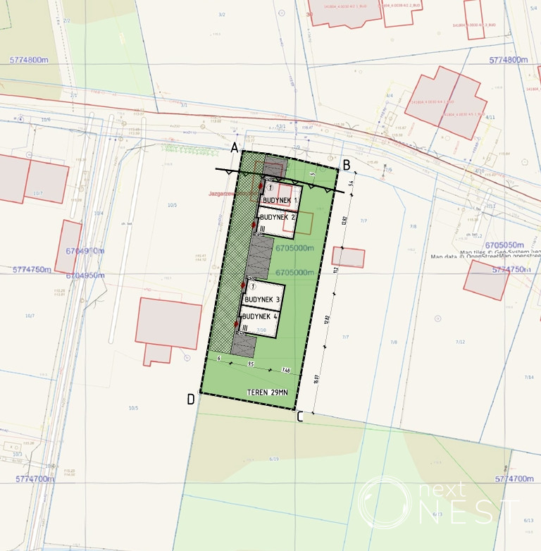 Domy zlokalizowane są w otoczeniu zabudowy jednorodzinnej i terenów zielonych, przy cichej bocznej ulicy.