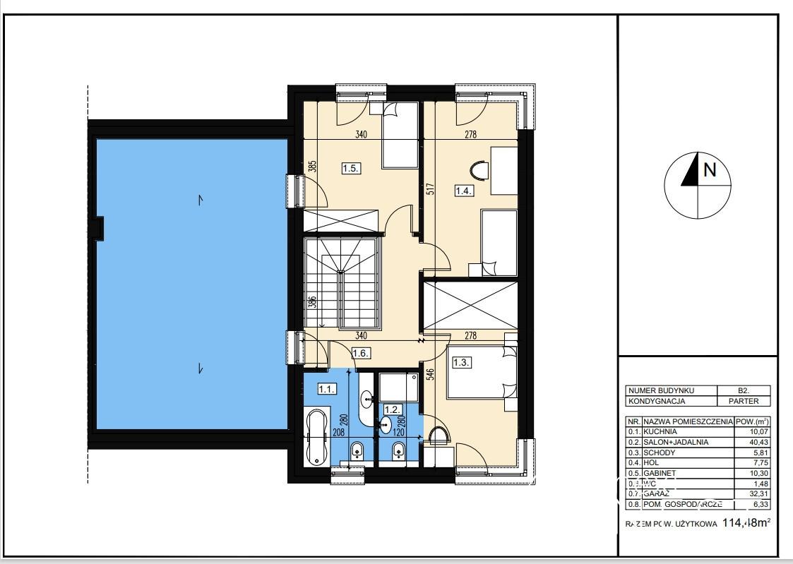 - pokój 1.3 został zmniejszony na rzecz garderoby do pokoju 1.4