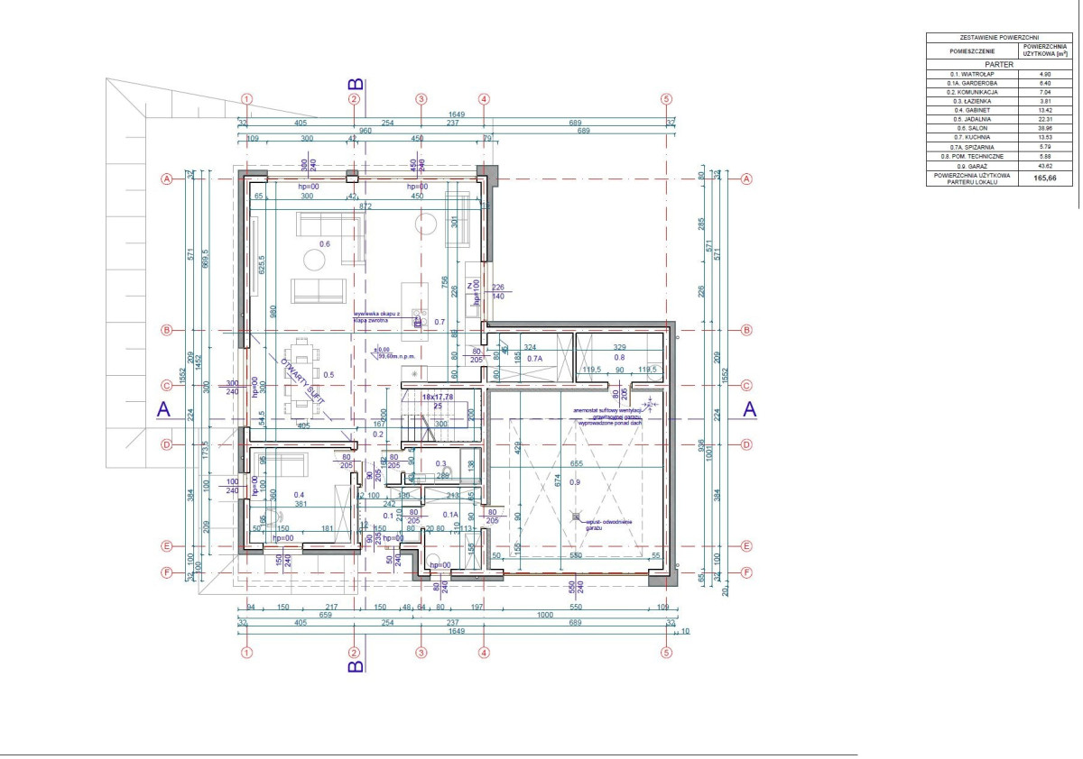 - powierzchnia parteru - 165,66 m2 (w tym 43,62 m2 garaż)