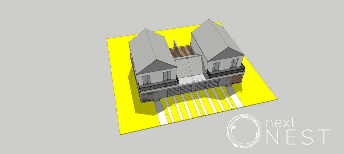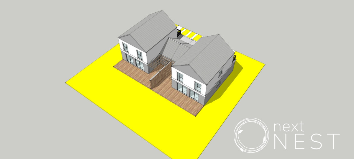Dom jednorodzinny dwulokalowy - każdy lokal sprzedawany z odrębną księgą wieczystą oraz udziałem w całej działce (powierzchnia łączna działki pod dwa domy - 1064 m2).