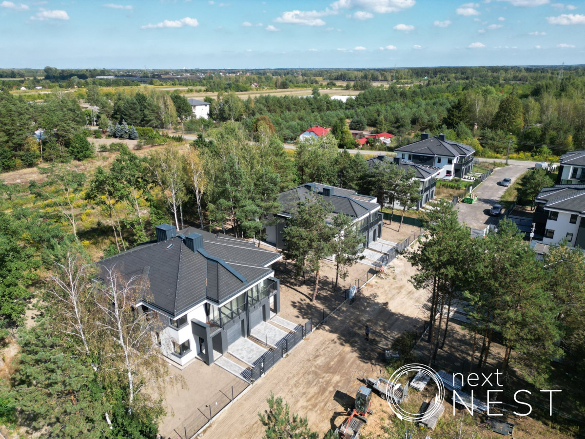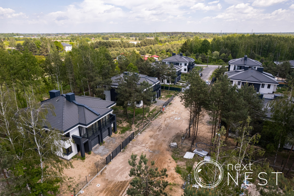 Dom znajduje się na nowoczesnym osiedlu w otoczeniu lasu, zaledwie 25 km od Warszawy i stanowi idealne miejsce dla osób poszukujących spokoju i bliskości natury, nie rezygnując przy tym z komfortu nowoczesnego życia.