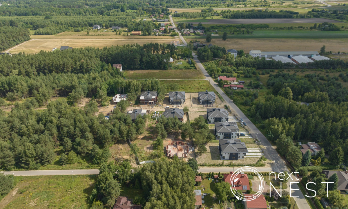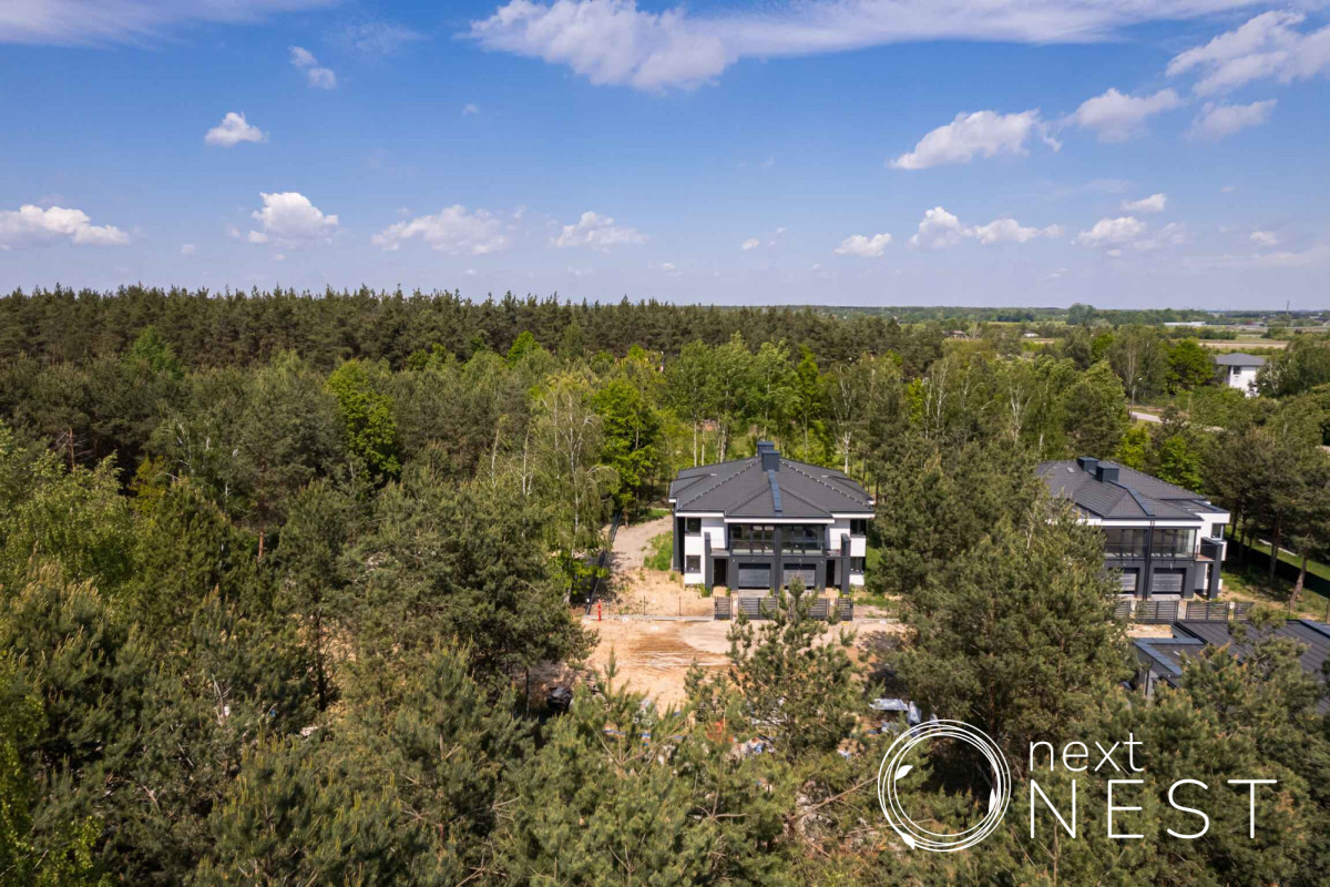 Dom znajduje się na nowoczesnym osiedlu w otoczeniu lasu, zaledwie 25 km od Warszawy i stanowi idealne miejsce dla osób poszukujących spokoju i bliskości natury, nie rezygnując przy tym z komfortu nowoczesnego życia.