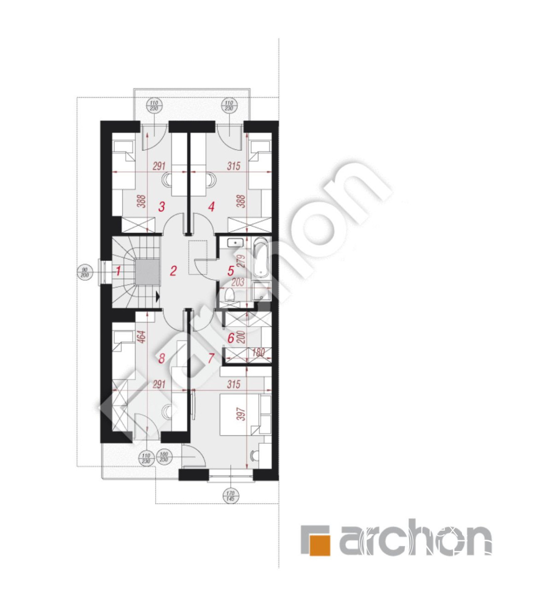 Dom zrealizowany jest w ramach mini osiedla budynków w zabudowie bliźniaczej (pozostałe domy również do sprzedaży).