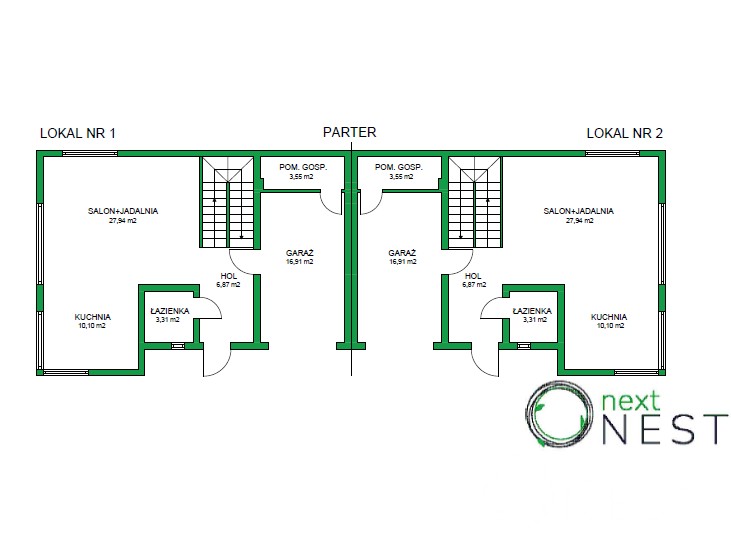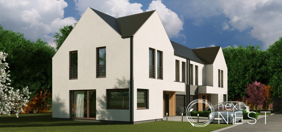 Dom jednorodzinny dwulokalowy - każdy lokal sprzedawany z odrębną księgą wieczystą oraz udziałem w całej działce (powierzchnia łączna działki pod dwa domy - 1000 m2).