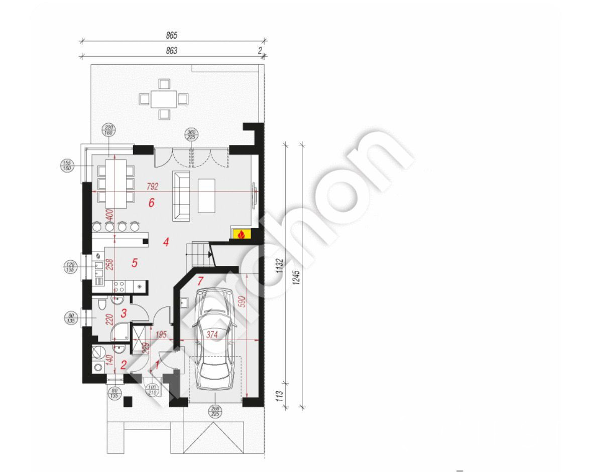 - możliwość zamontowania kominka (przygotowany komin oraz dopływ powietrza).