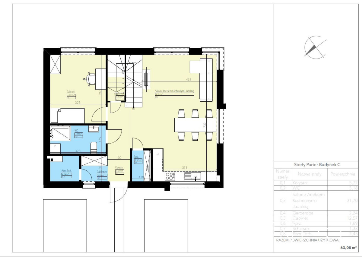 - dach - dwuspadowy, pokryty blachą na rąbek