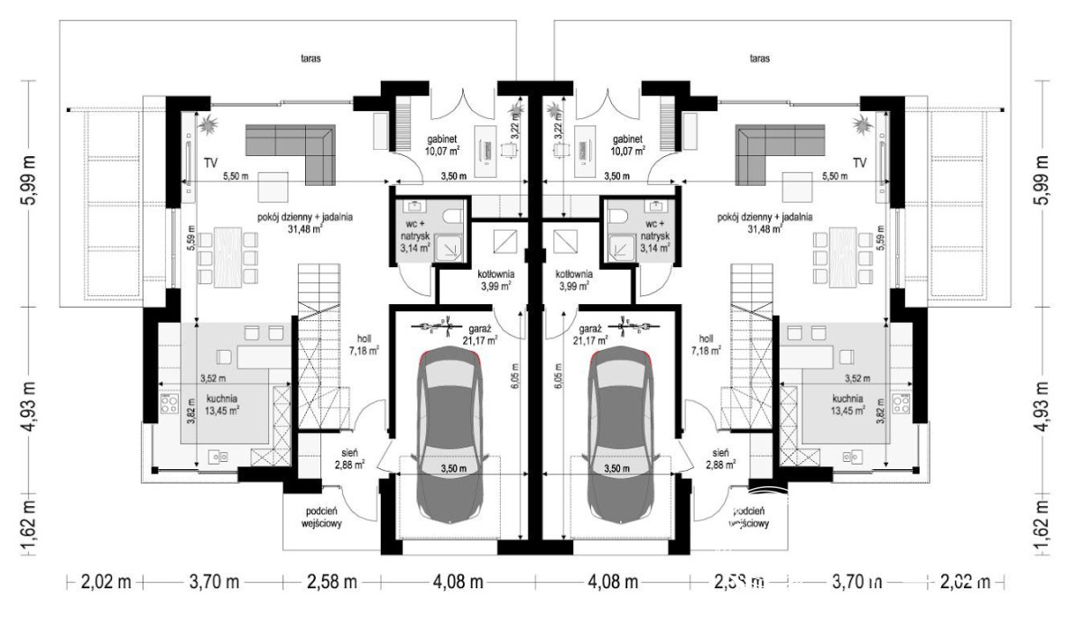 Połówka bliźniaka ma powierzchnię użytkową 173 m2, usytuowana jest na działce o powierzchni 1500 m2 (do wyłącznej dyspozycji). Garaż jednostanowiskowy w bryle budynku oraz miejsce parkingowe przed budynkiem.