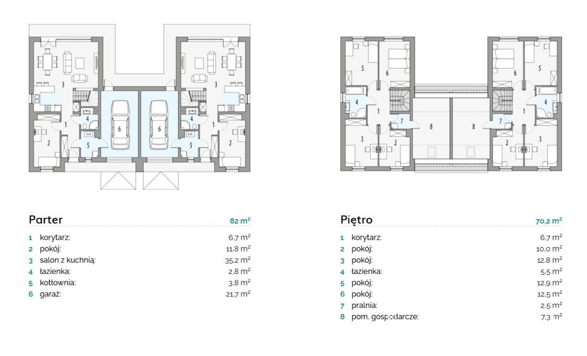 Powierzchnia użytkowa jednej części to 152,20 m2. Dom posadowiony na działce o pow. 625 m2.