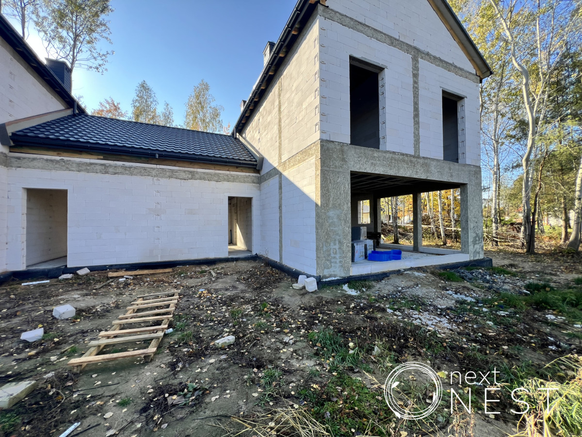 Cena podana za stan deweloperski obejmujący ogrodzenie, podjazd oraz chodnik z kostki, ocieplenie styropianem grafitowym 20 cm, okna PCV ALUPLAST. Dom budowany z betonu komórkowego (bloczek Ytong), pokryty blachą, izolacja termiczna stropu nad piętrem piana PUR. Wewnątrz tynki gipsowe maszynowe, wylewki, ogrzewanie podłogowe na obu piętrach, pompa ciepła Vaillant.