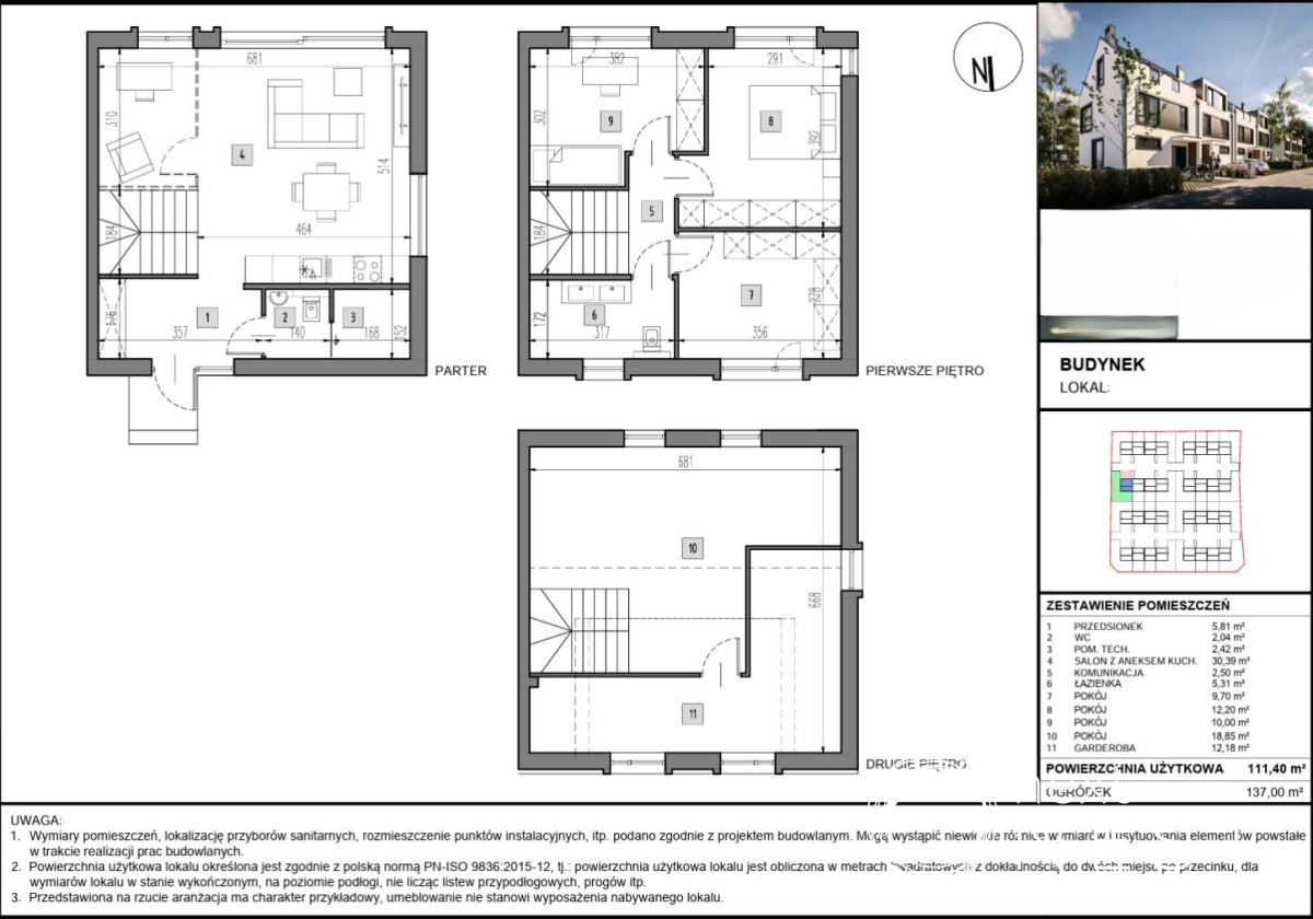 Przedmiotem sprzedaży jest 3 poziomowy lokal mieszkalny w stanie deweloperskim o powierzchni użytkowej 111,40 m2 z ogródkiem 137 m2, w budynku dwulokalowym w zabudowie bliźniaczej. Do lokalu przynależą 2 miejsca postojowe na podjeździe przed budynkiem. Osiedle położone jest w otoczeniu zabudowy jednorodzinnej w cichej okolicy.