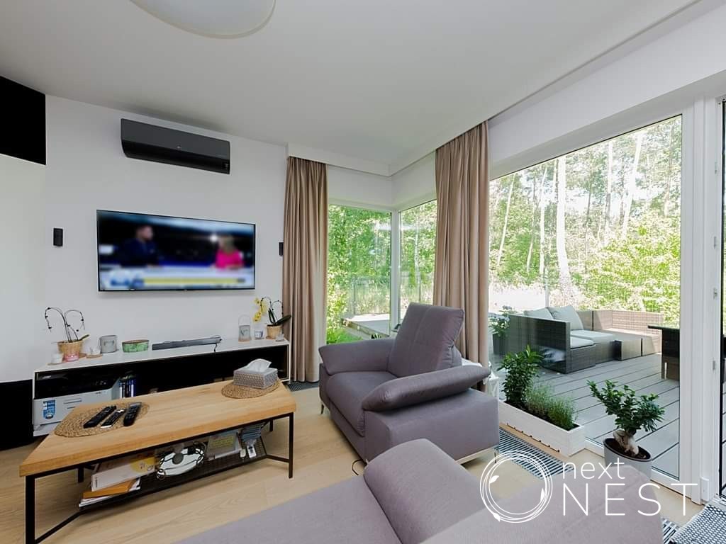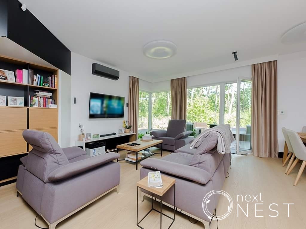Przedmiotem wynajmu jest dom w zabudowie bliźniaczej, z pięknym widokiem na las, o powierzchni 126 m2. Dom znajduje się na zamkniętym monitorowanym osiedlu, na działce o powierzchni 231 m2.