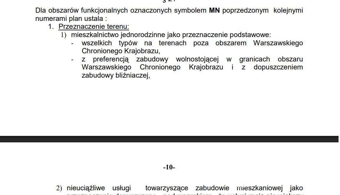 Działka objęta jest planem zagospodarowania przestrzennego i położona w strefie oznaczonej symbolem MN. Miejscowy plan pozwala na budowę na działce budynku wolnostojącego lub niewielkiego bliźniaka.