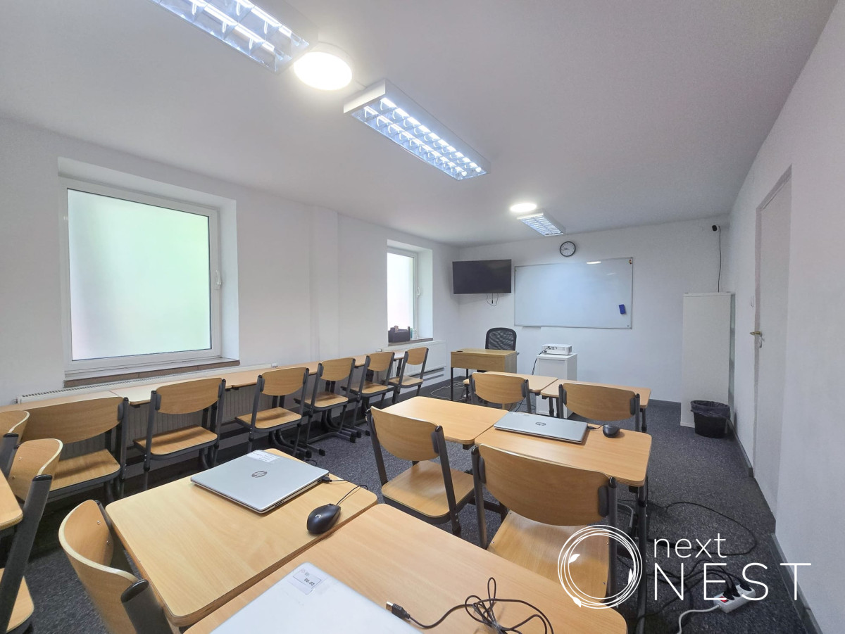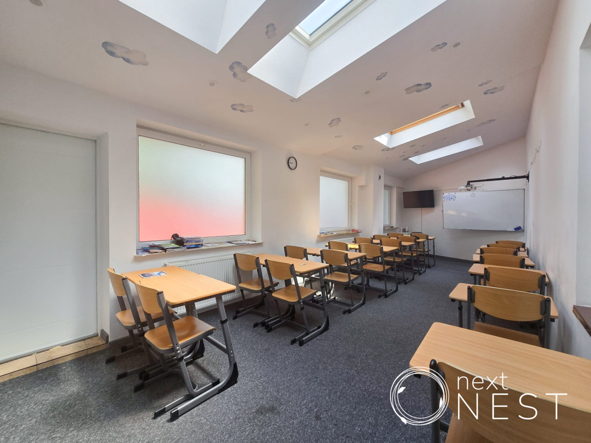 Nieruchomość składa się z hallu, 6 pomieszczeń obecnie zaadoptowanych na sale lekcyjne, kuchni i 3 łazienek.