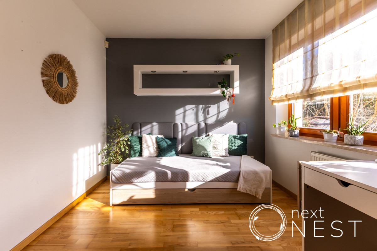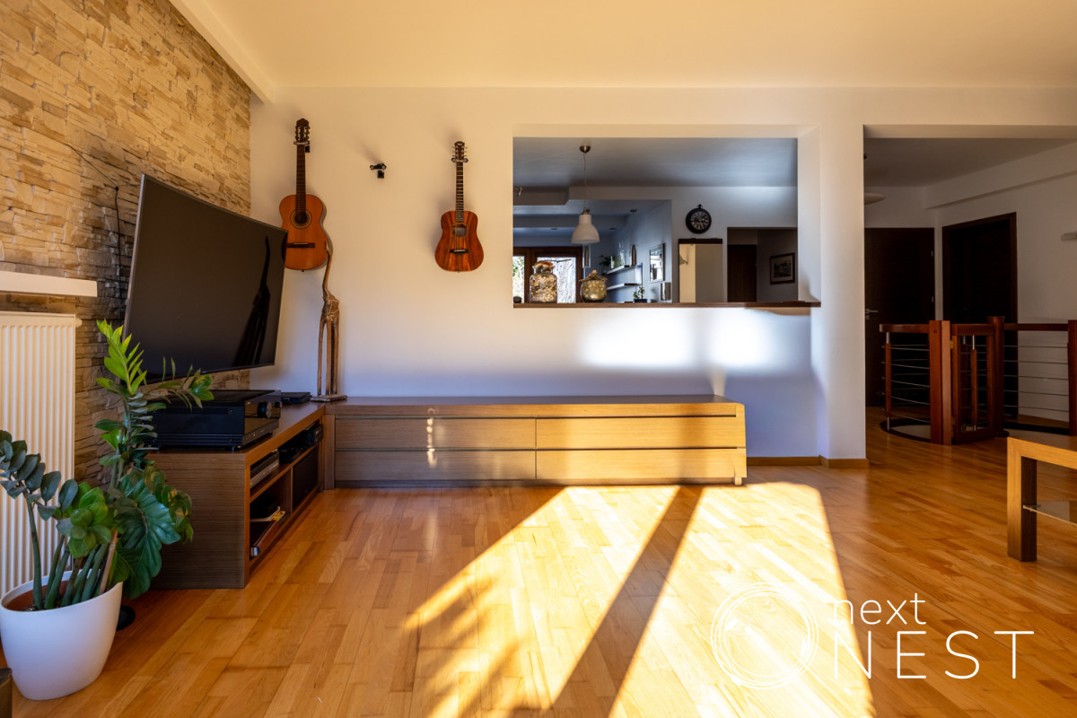 Sprzęty AGD: lodówka, płyta indukcyjna, piekarnik elektryczny, zmywarka. Wykończone z dobrej jakości materiałów: drewniane podłogi i schody, system nagłośnienia w łazience oraz sterowanie do głośników w pokojach, ogrzewanie podłogowe w sypialni, okna drewniane. W oknach zamontowane moskitiery na wymiar.
