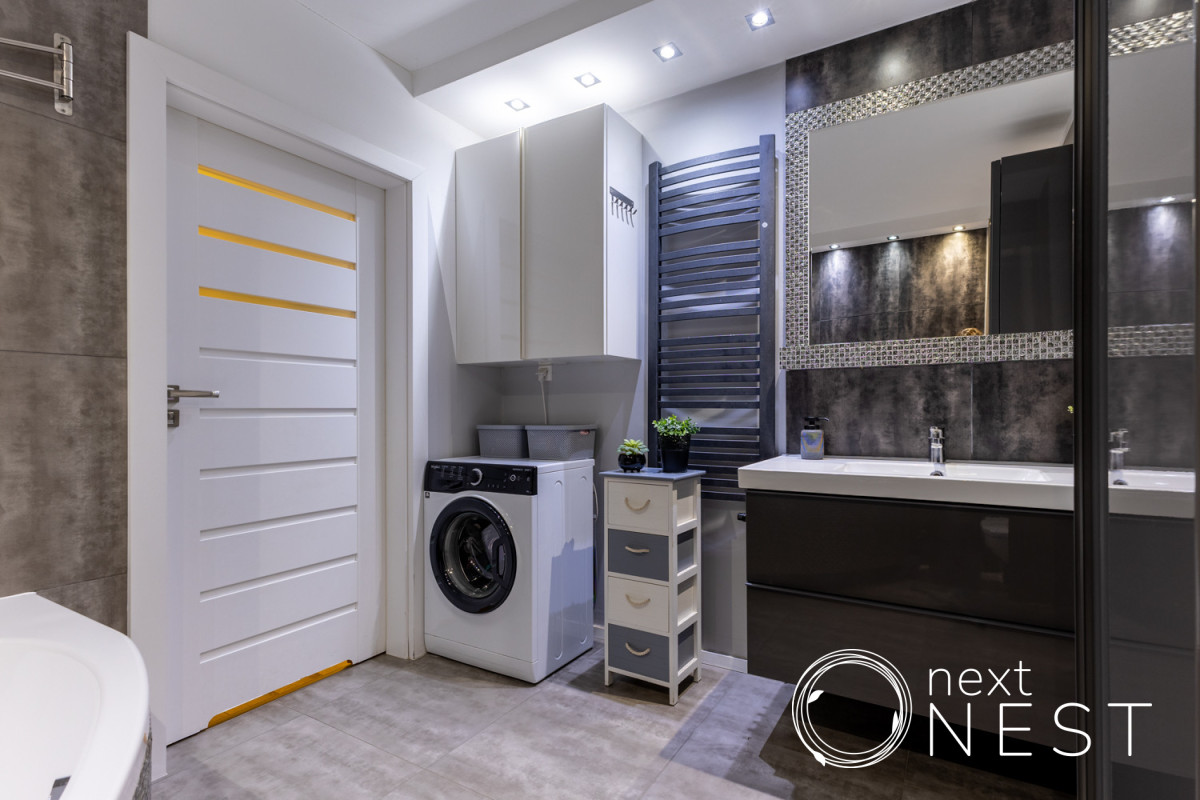 Kuchnia wyposażona we wszystkie niezbędne sprzęty AGD, w łazience duża, narożna wanna.