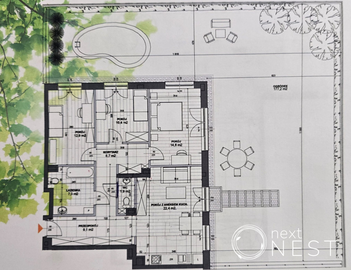 - 3 pokoje- 14,8m2, 12,9m2, 10,4m2