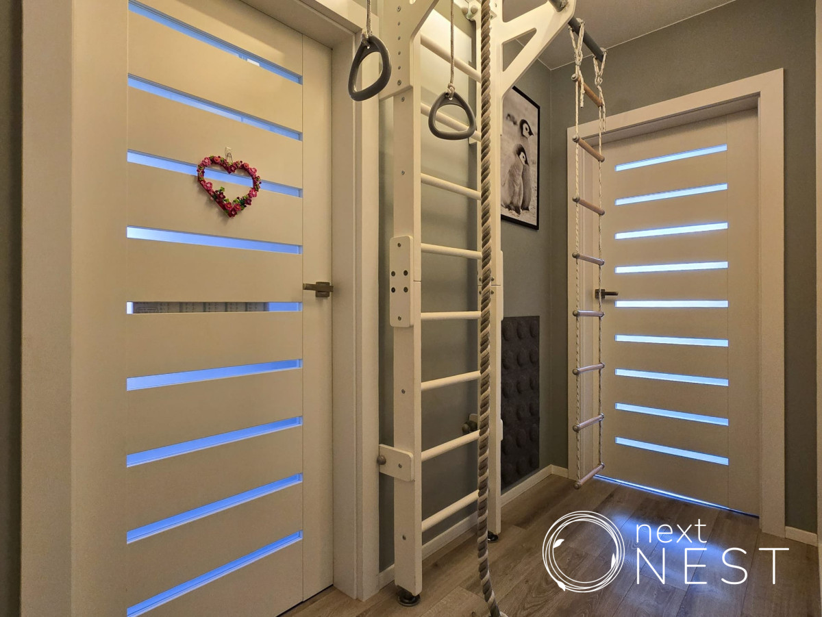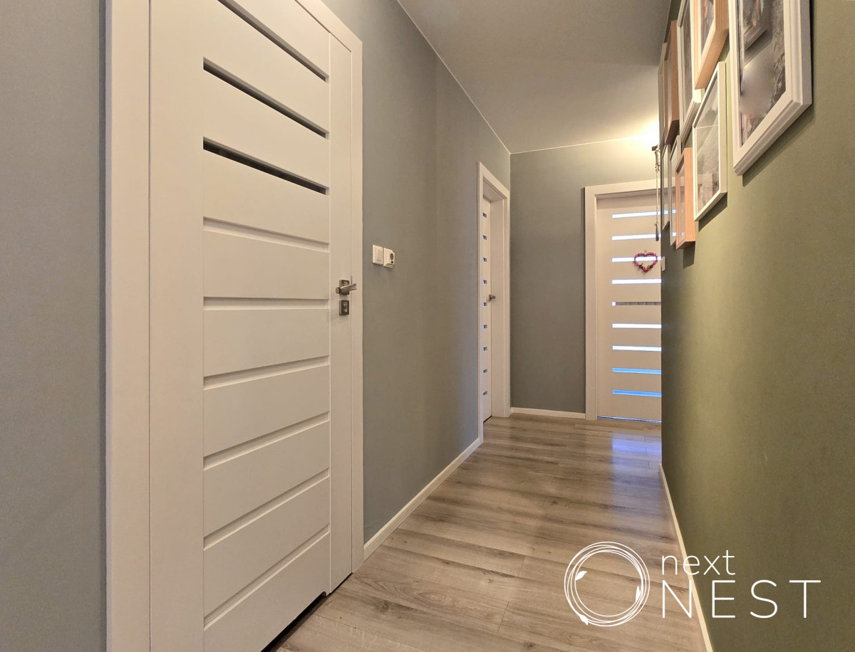 Na podłogach panele i gres, w korytarzu i łazience ogrzewanie podłogowe.