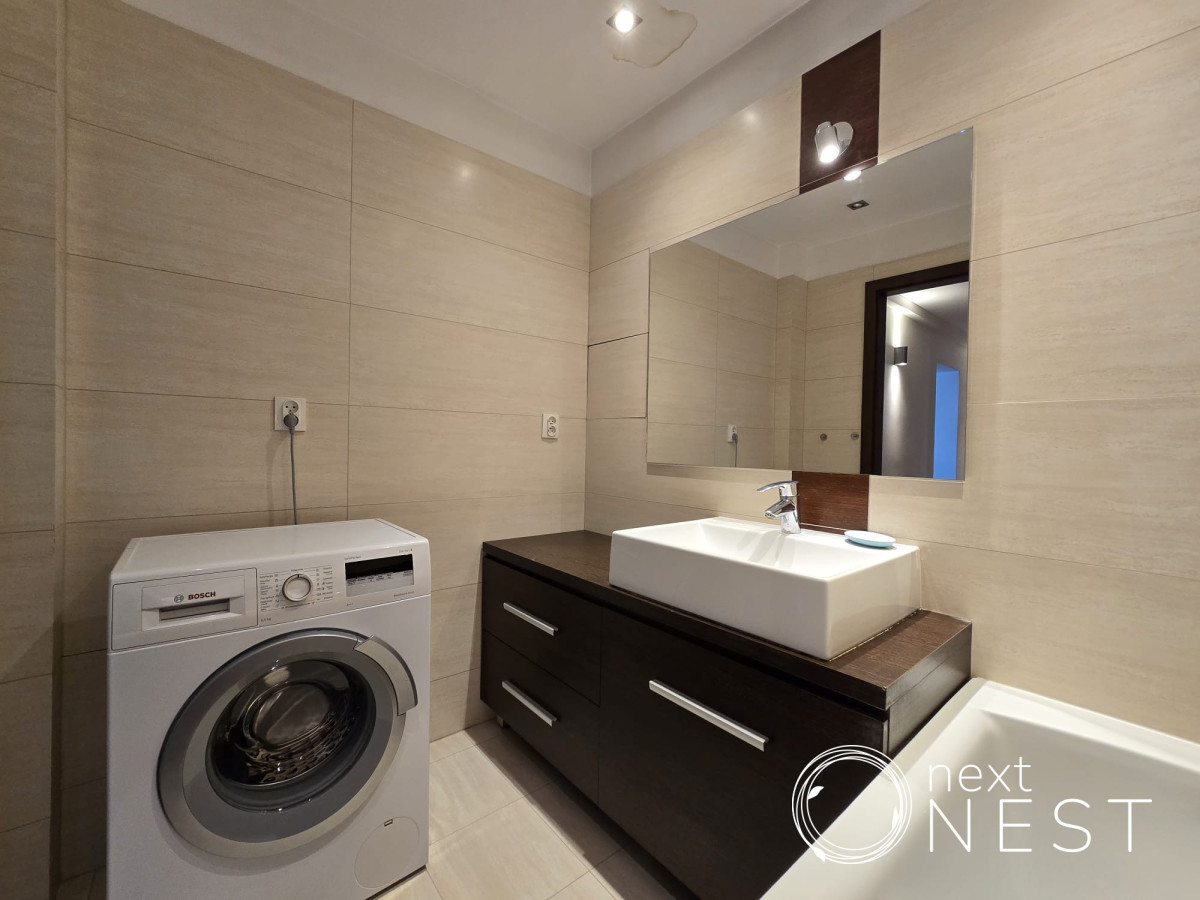- łazienki z wanną i pralką,