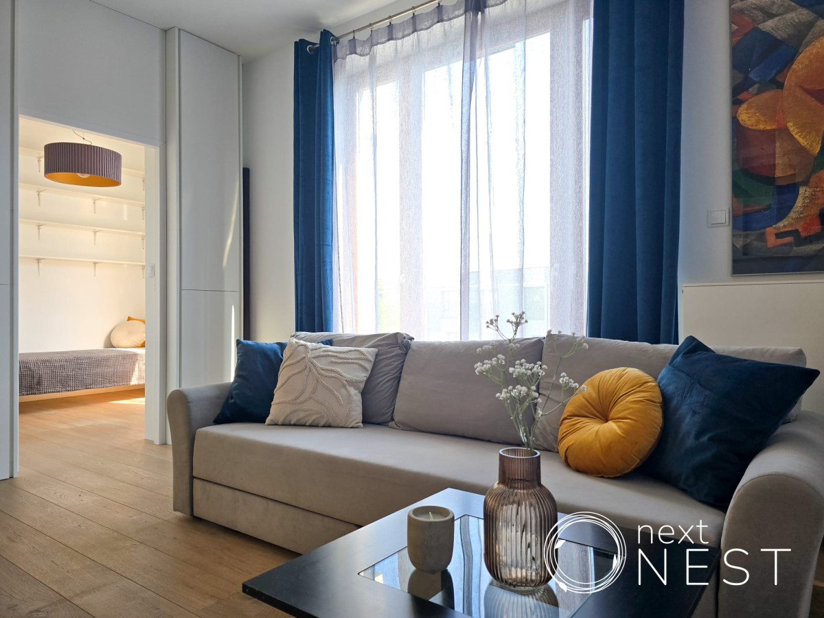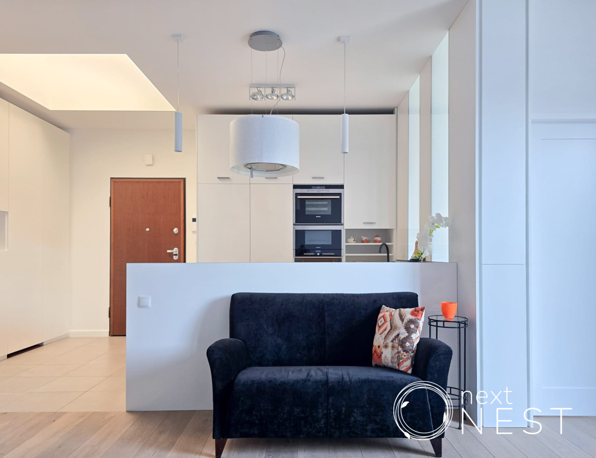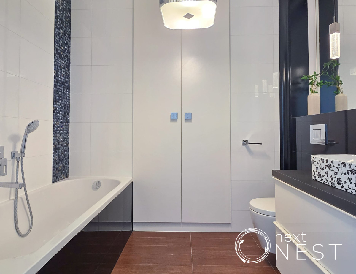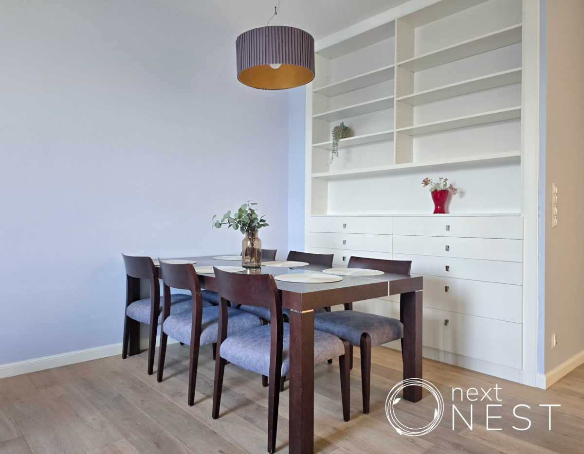 Mieszkanie zaprojektowane i wykończone w wysokim standardzie, z dużą ilością szaf w zabudowie, na podłodze deska dębowa.