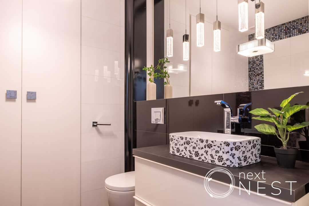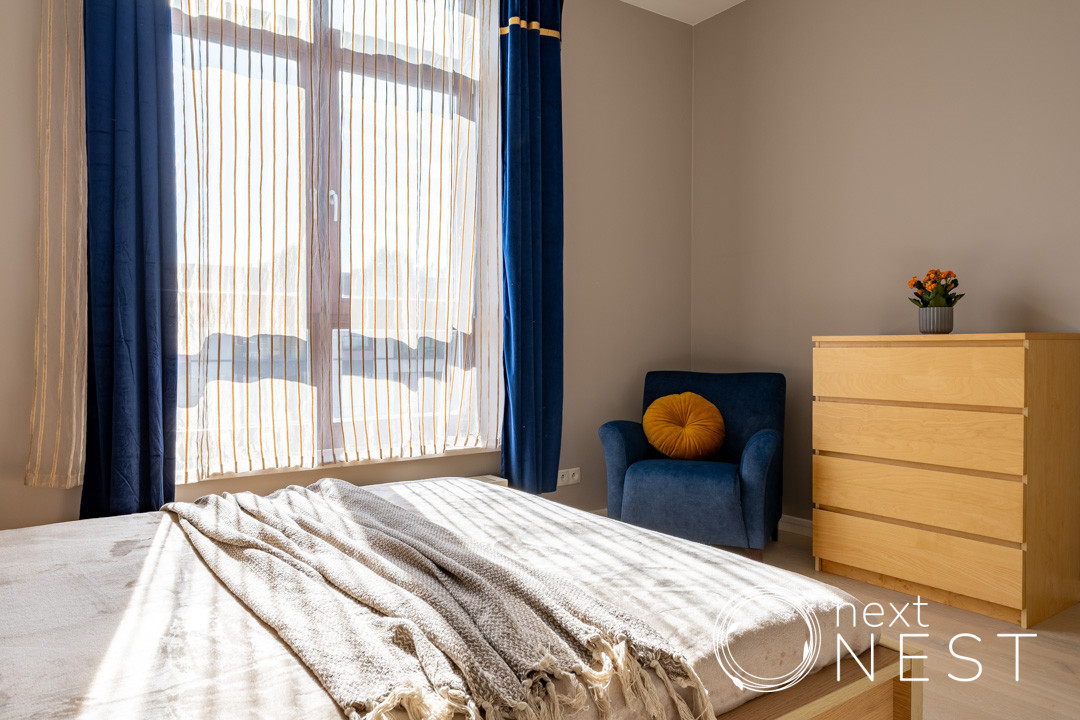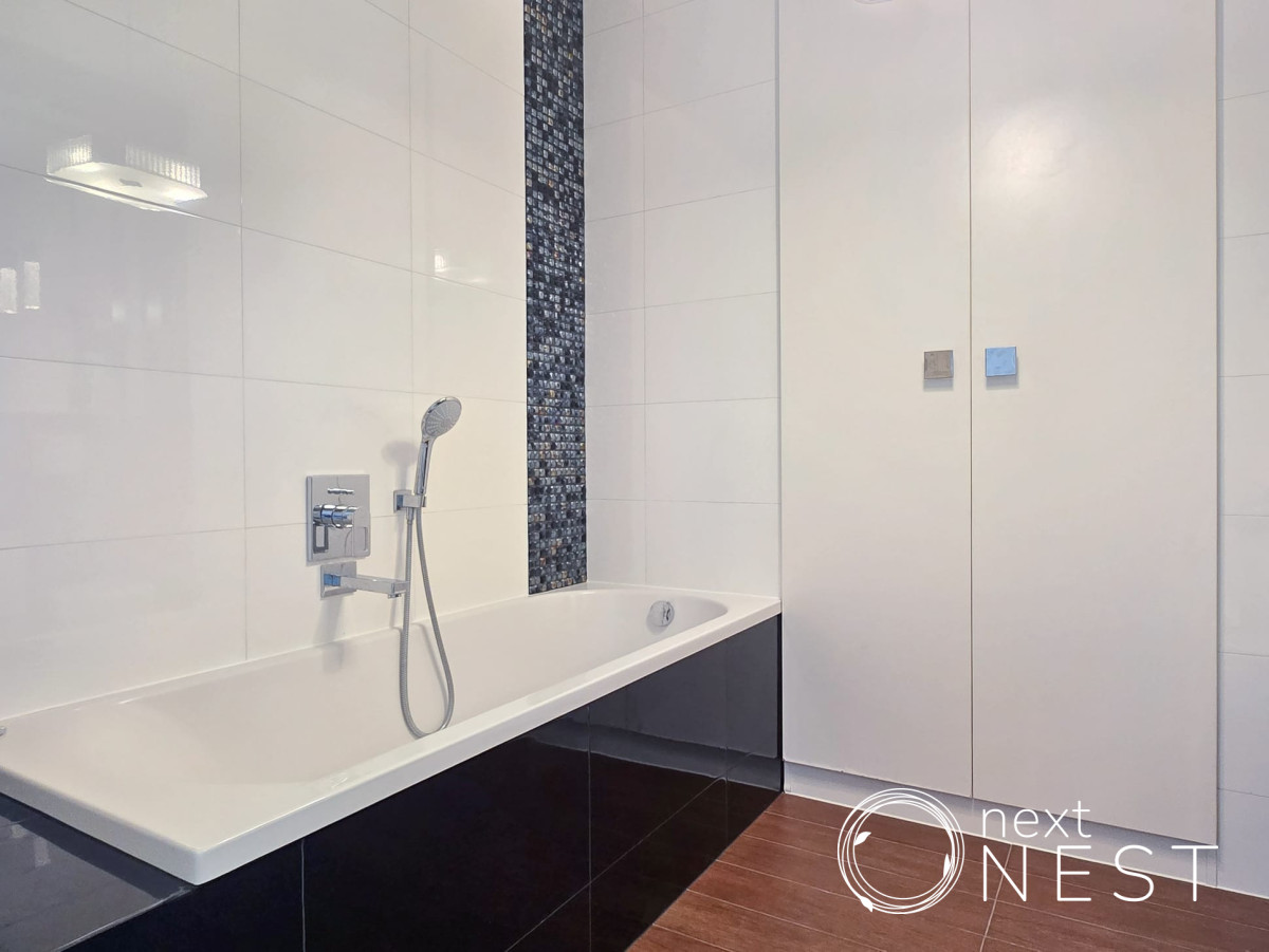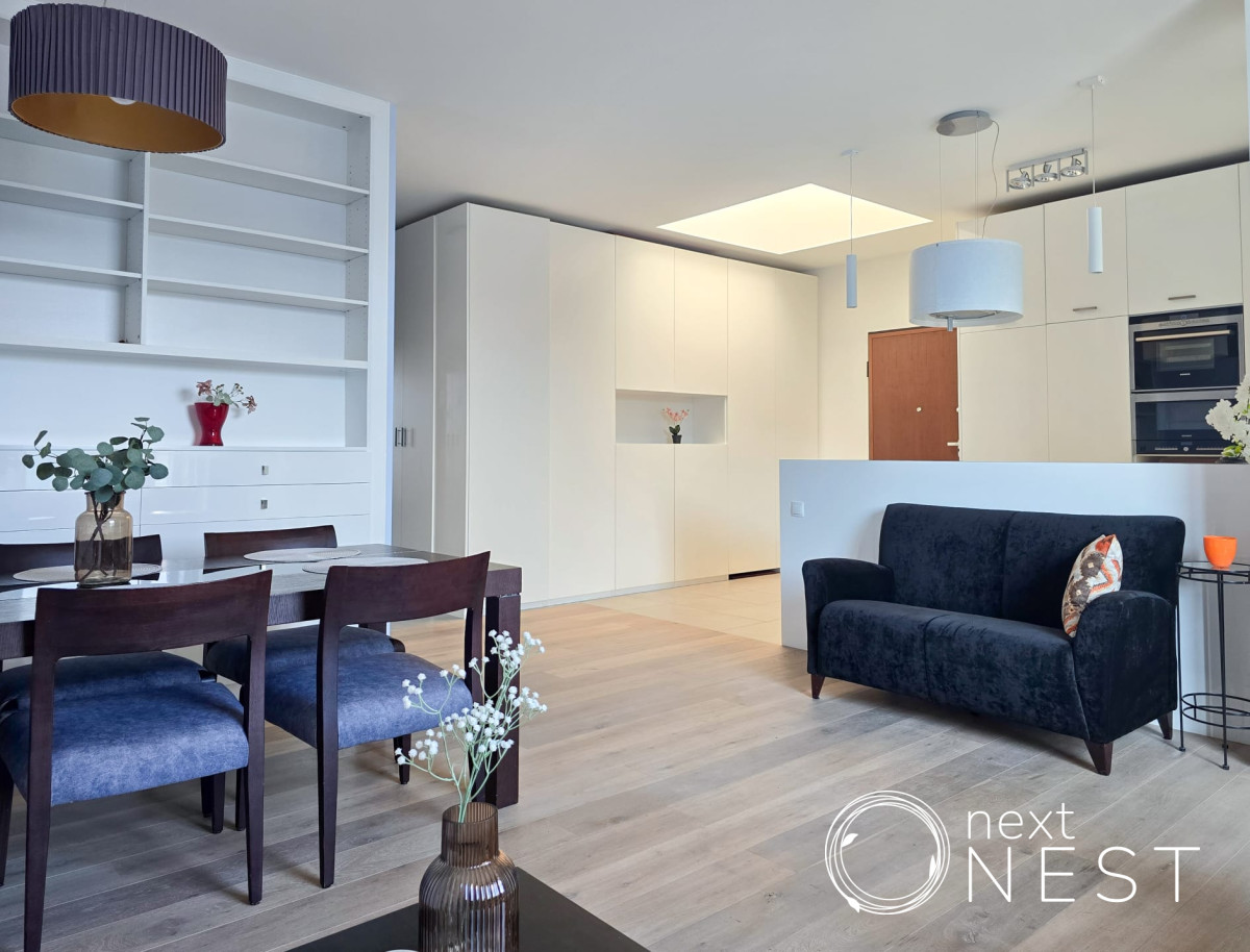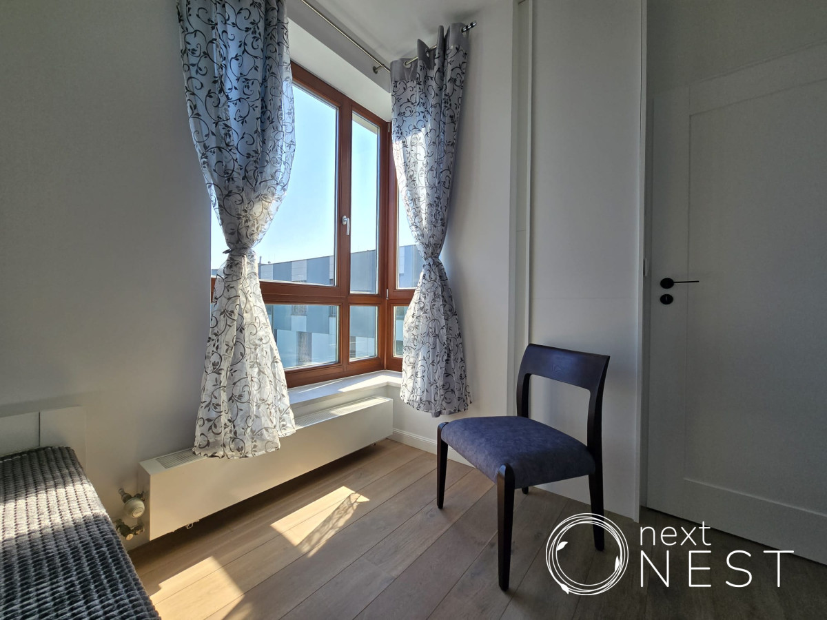 Mieszkanie zaprojektowane i wykończone w wysokim standardzie, z dużą ilością szaf w zabudowie, na podłodze deska dębowa.