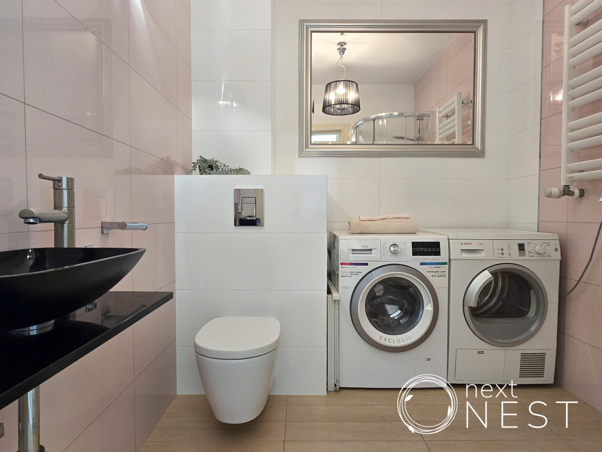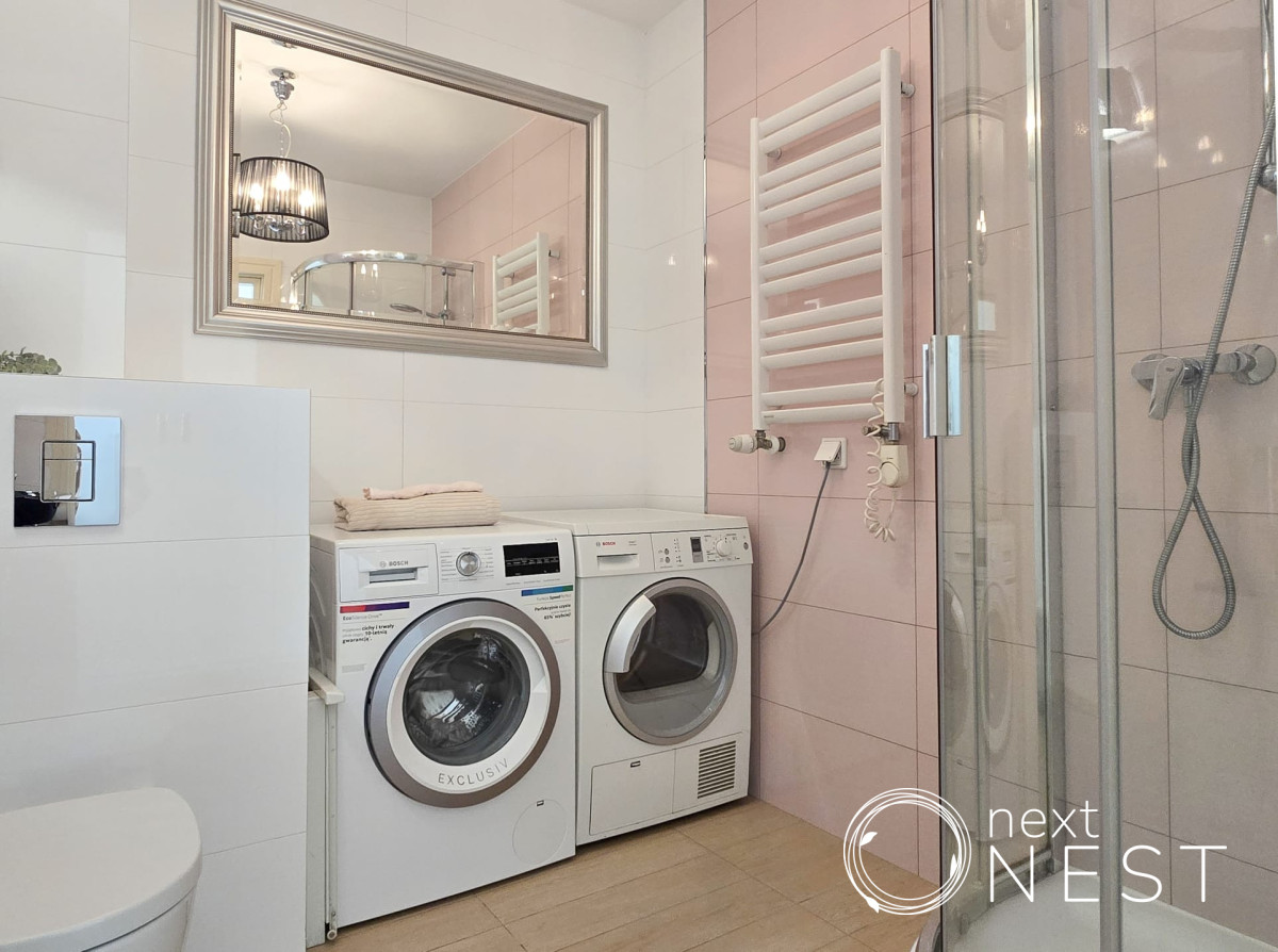- łazienka z prysznicem z pralką i suszarką,