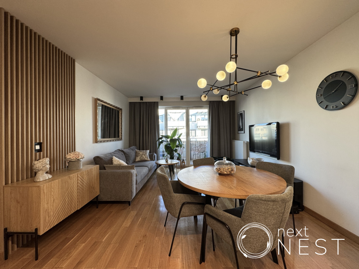 - salon z aneksem kuchennym (Kuchnia - w pełni wyposażona: piekarnik, lodówka, zmywarka oraz meble w zabudowie),