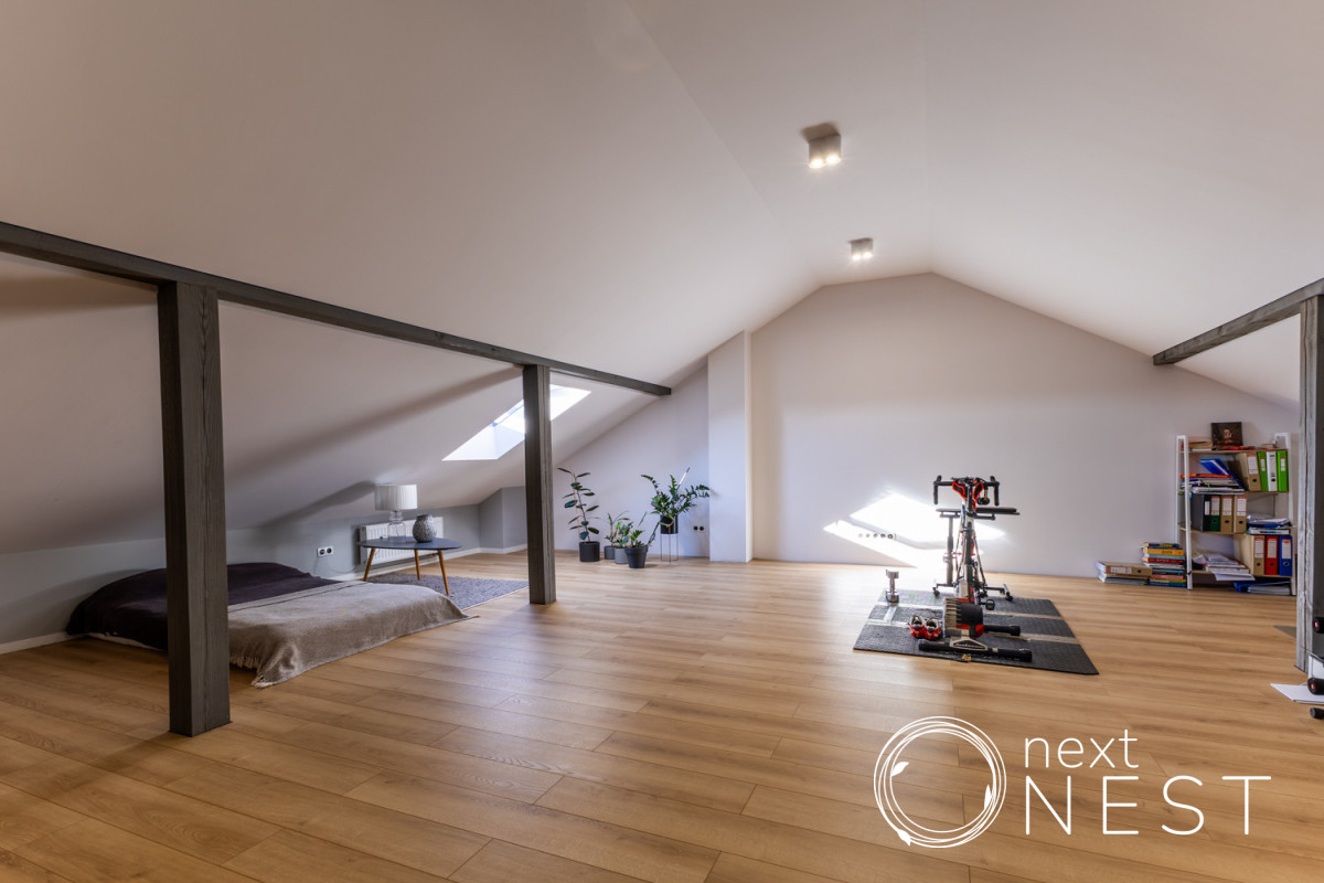 - w pełni wykończone poddasze użytkowe z łazienką - idealne jako biuro, strefa relaksu, siłownia lub dodatkowa przestrzeń mieszkalna.