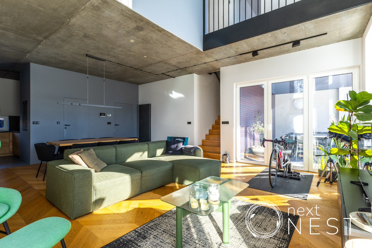 Przemyślany układ pomieszczeń zapewnia maksymalną funkcjonalność oraz komfort codziennego życia. Salon z antresolą, która doskonale doświetla wnętrza i tworzy elegancką i przytulną atmosferę. Taras o pow. około 50 m2 z deski kompozytowej, oraz ogródek z zimozielonymi nasadzeniami.