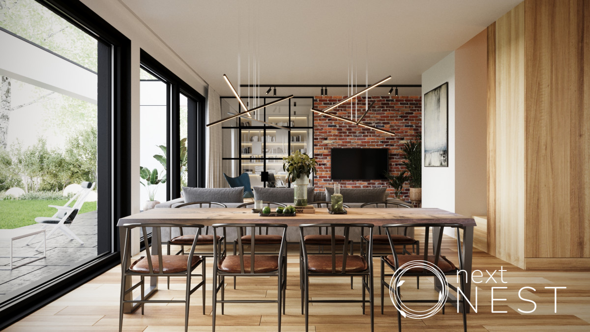 W cenie domu: pompa ciepła, ogrzewanie podłogowe NA OBU PIĘTRACH, drzwi wejściowe drewniane, okna przesuwne w salonie, automatyczna brama garażowa KRISPOL,