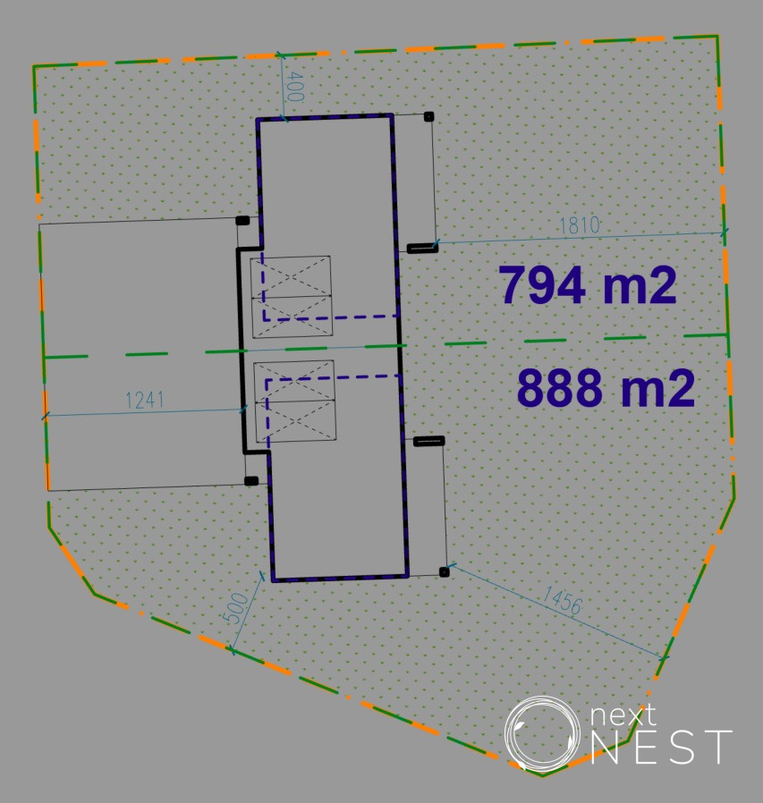 Dom jednorodzinny w zabudowie dwulokalowej (powierzchnia łączna działki pod dwa domy - 1678 m2).