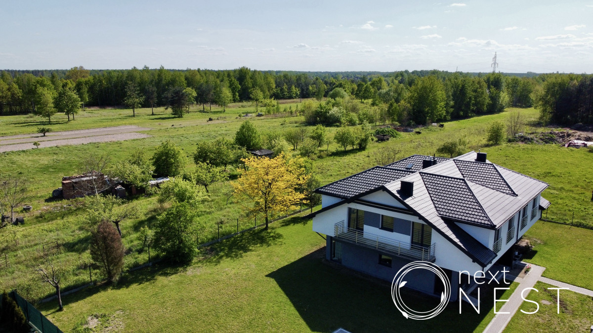 Przedmiotem sprzedaży jest połówka domu jednorodzinnego dwulokalowego o powierzchni użytkowej 189,2 m2. Nieruchomość posadowiona na działce o łącznej powierzchni około 1500 m2 (do wspólnego korzystania). Miejsca parkingowe przed budynkiem.