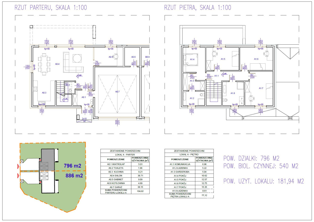 Dom jednorodzinny w zabudowie dwulokalowej (powierzchnia łączna działki pod dwa domy - 1040 m2).