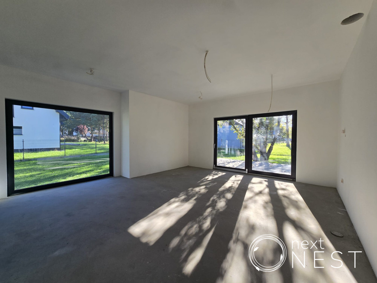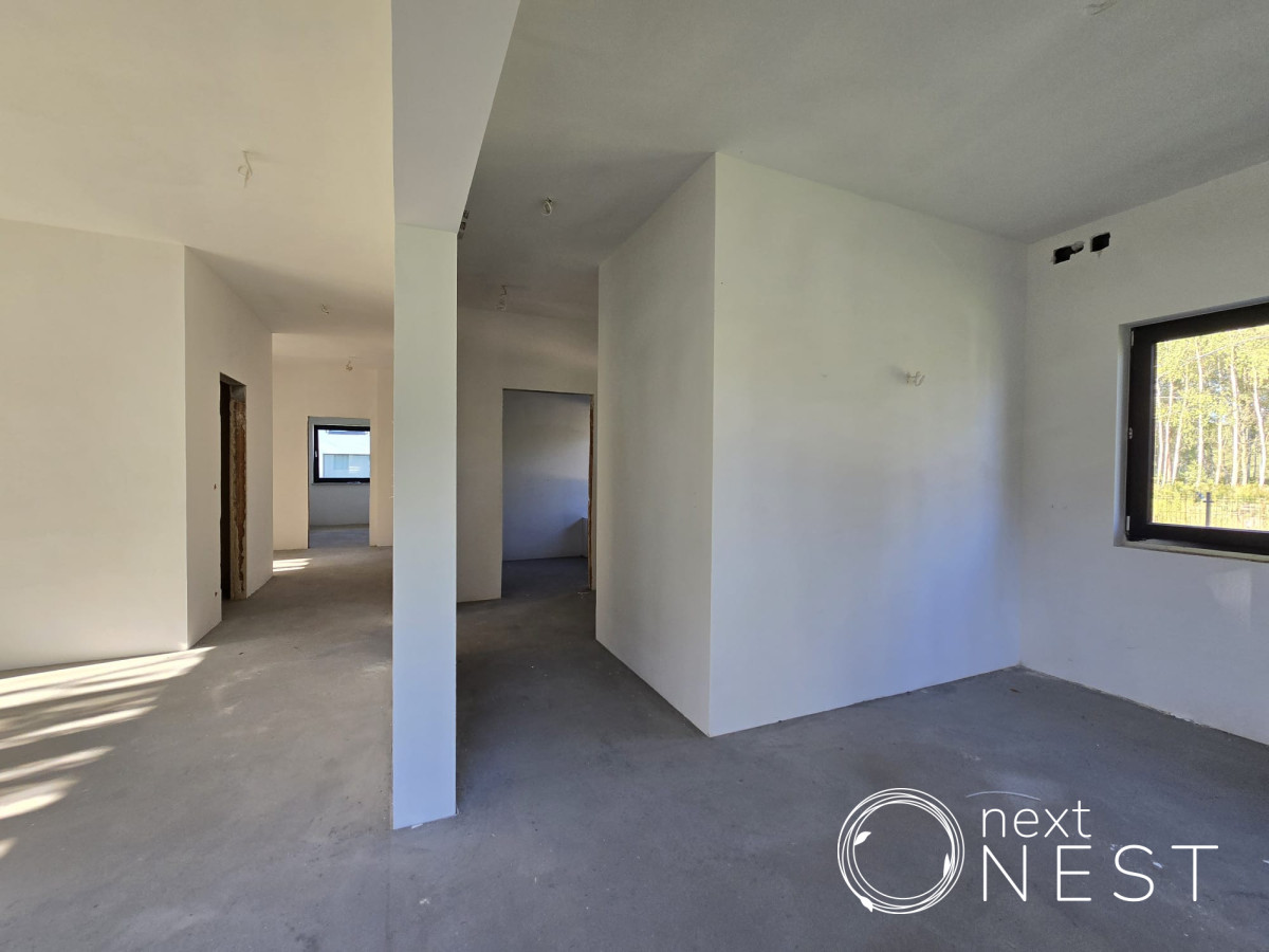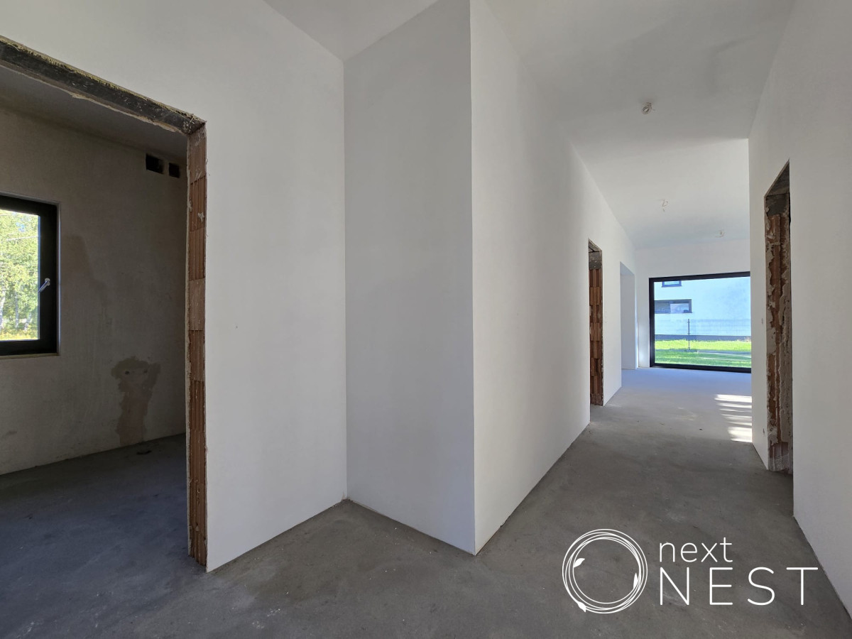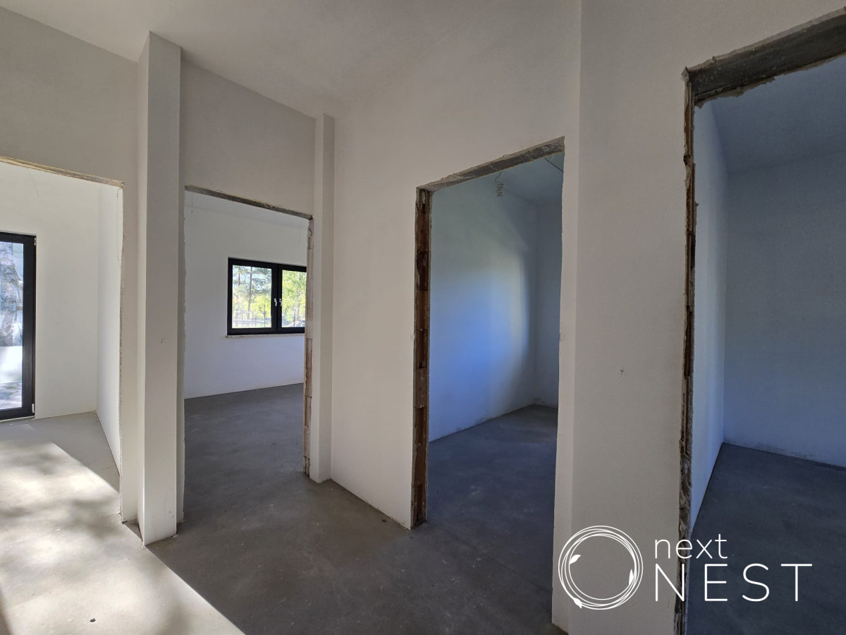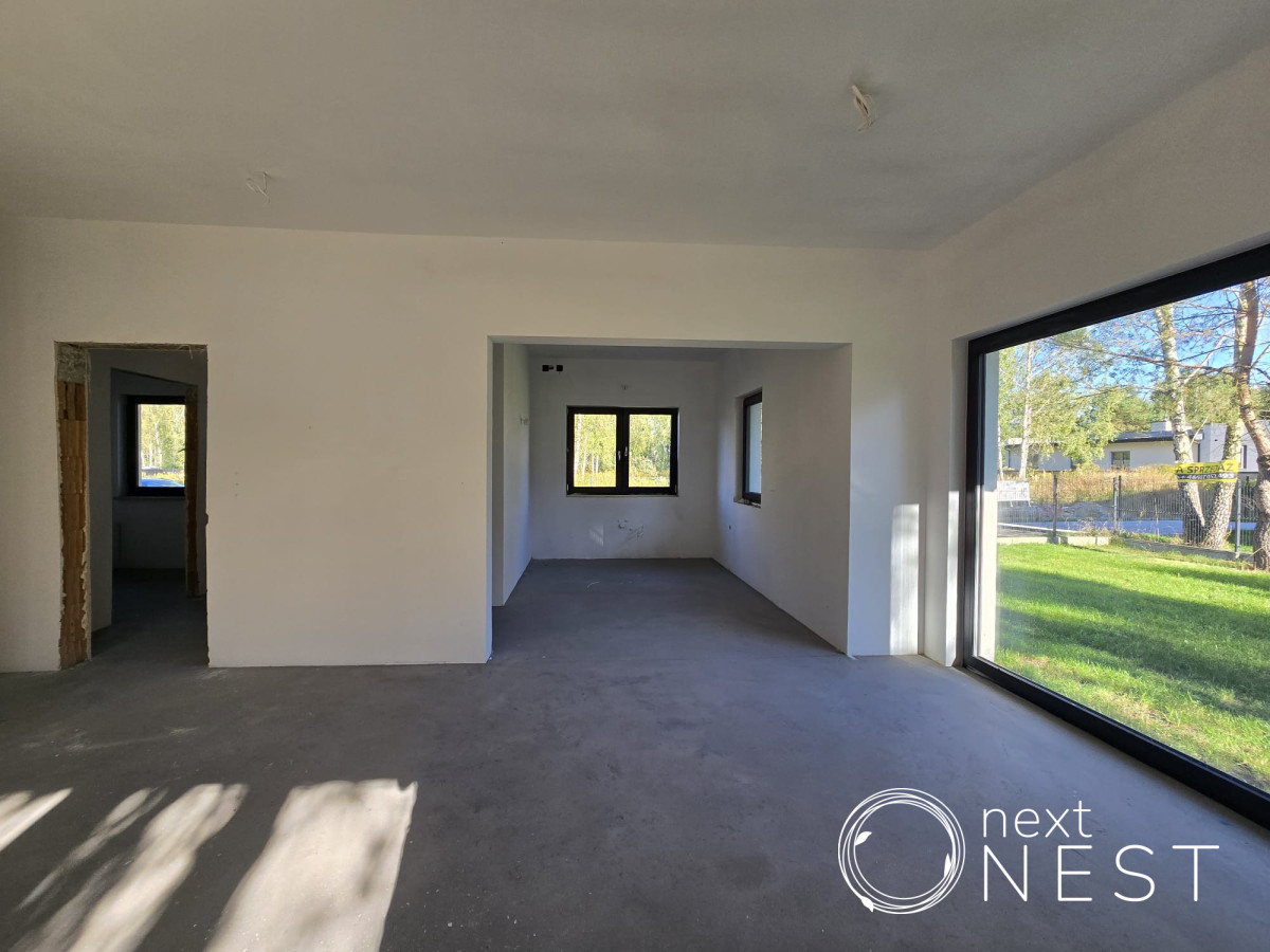 Przedmiotem sprzedaży jest dom parterowy w stanie deweloperskim o pow. użytkowej ok. 120 m2, z dodatkową powierzchnią na poddaszu ok. 60 m2, na działce 1001 m2. Wykonano utwardzenia: podjazd, wejścia do domu taras oraz opaskę wokół budynku. W ogrodzie została nawieziona ziemia (humus), posiana trawa oraz wykonano ogrodzenie (bez bramy wjazdowej i furtki).