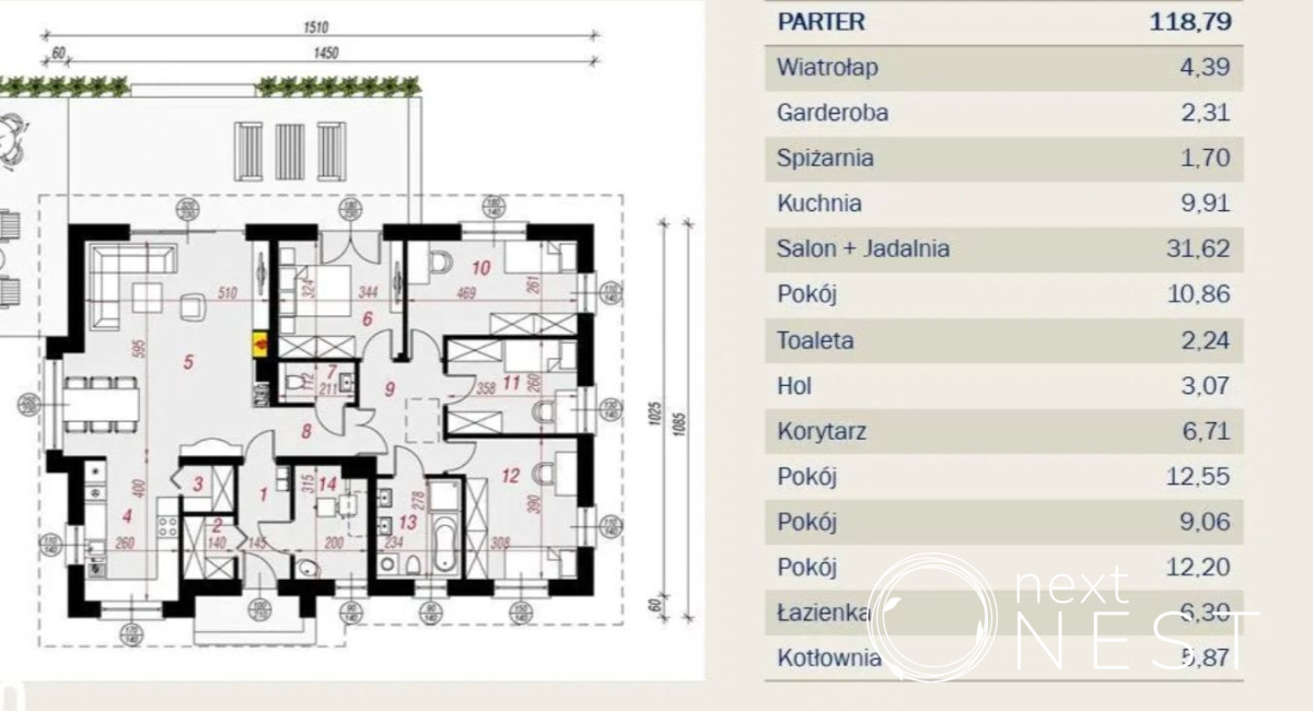 Dom ma bardzo funkcjonalny rozkład, składa się z aneksu kuchennego otwartego na salon z jadalnią, 4 sypialni, łazienki, osobnej toalety, kotłowni/garderoby, wiatrołapu i korytarza. Został wybudowany z pustaka ceramicznego, okna PCV trzyszybowe, kominek, pokrycie dachu - blachodachówka. Pompa ciepła w cenie.