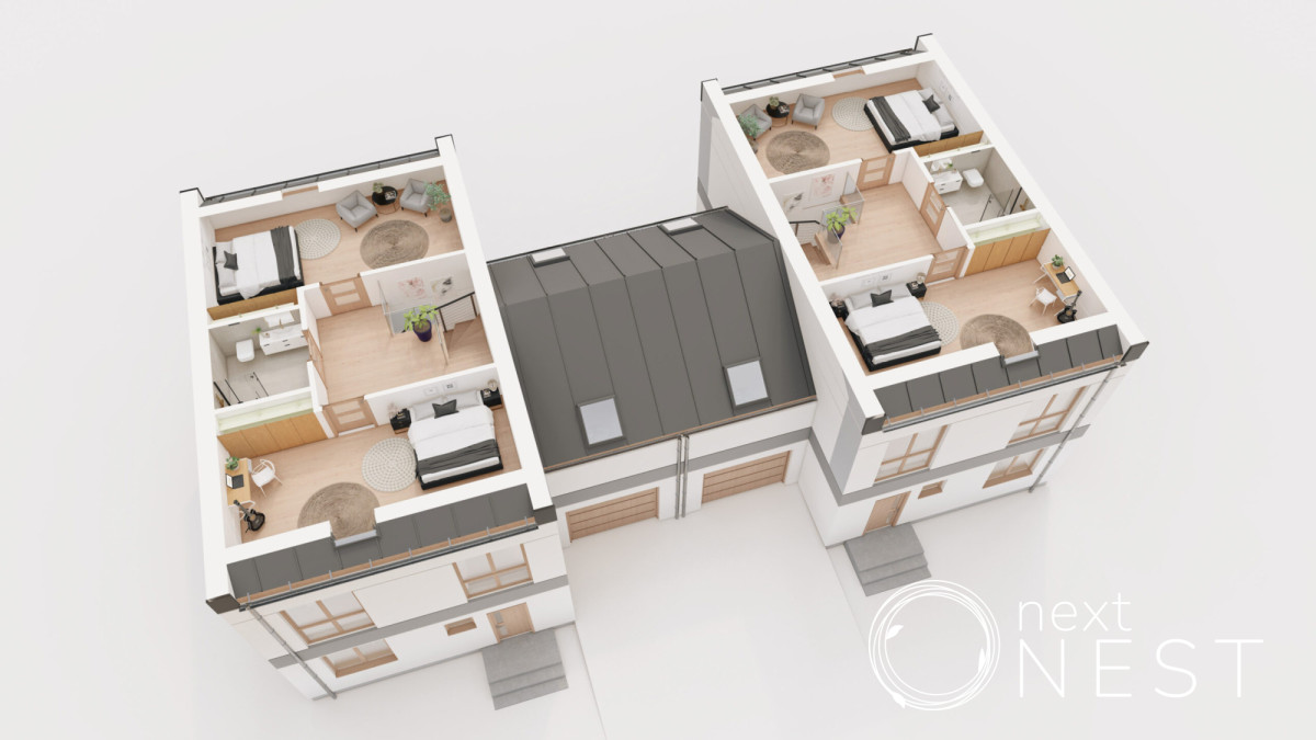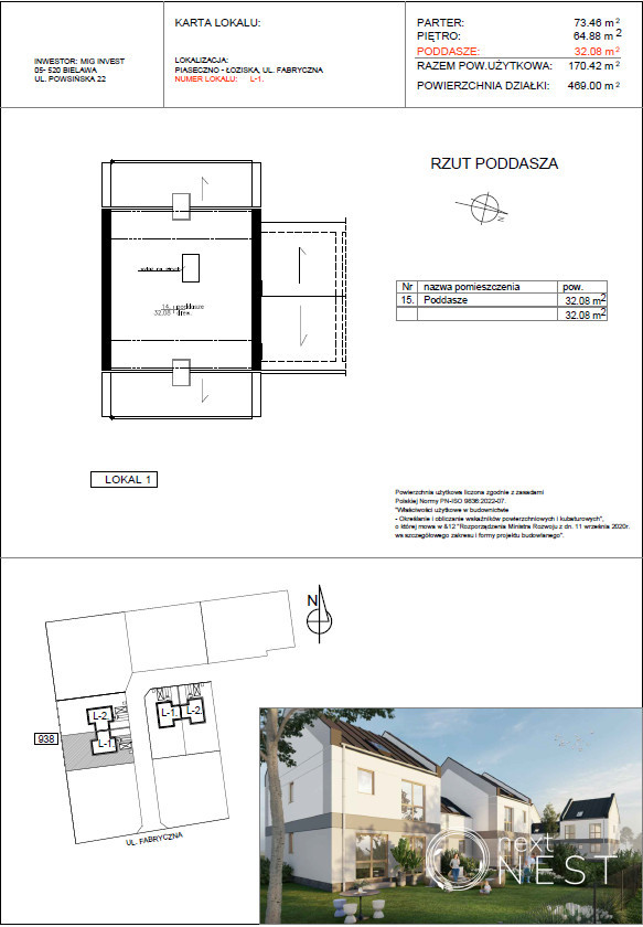 Poddasze - 32,08 m2Domy zlokalizowane będą w otoczeniu zabudowy jednorodzinnej i terenów zielonych, przy cichej bocznej ulicy.