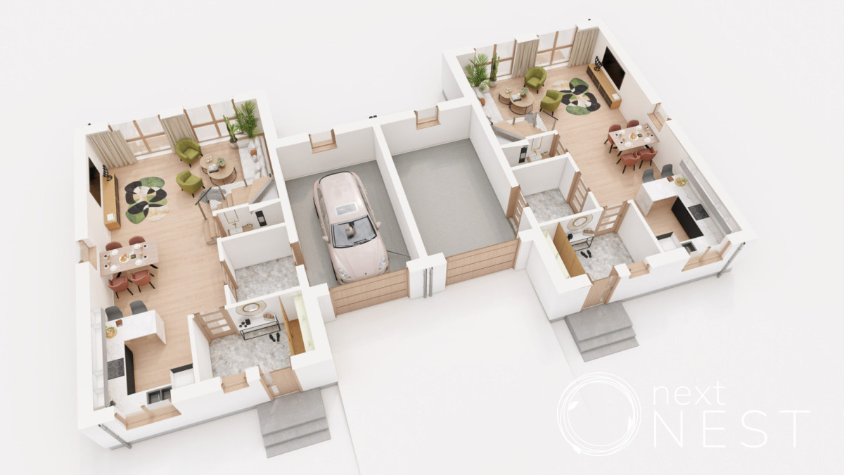 Inwestycja składa się z 2 budynku dwulokalowego (2 x 2 lokale mieszkalne).