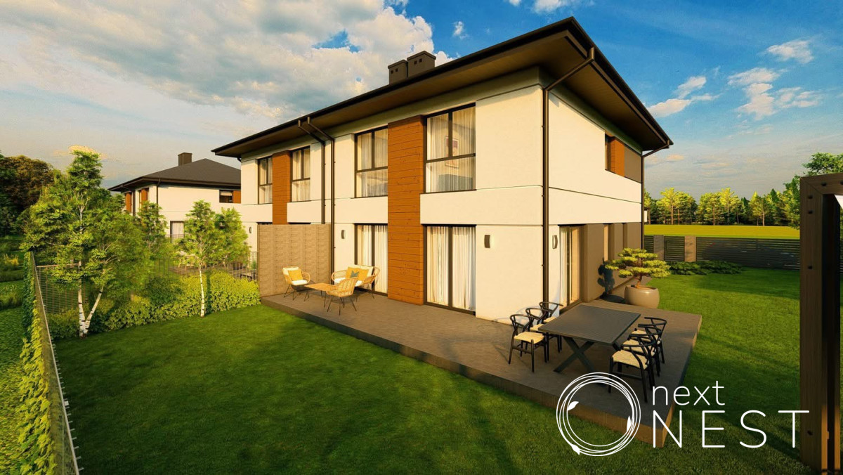 Przedmiotem sprzedaży jest połowa domu jednorodzinnego dwulokalowego w stanie deweloperskim o powierzchni użytkowej 141 m2, na działce o powierzchni 475 m2 do wyłącznej dyspozycji.
