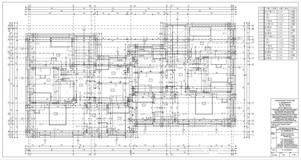 Budynek ma 149,73 m2 powierzchni całkowitej i 6 pokoi.