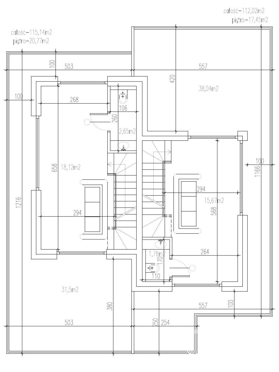 Piętro 1 i 2 domu bez skosów.