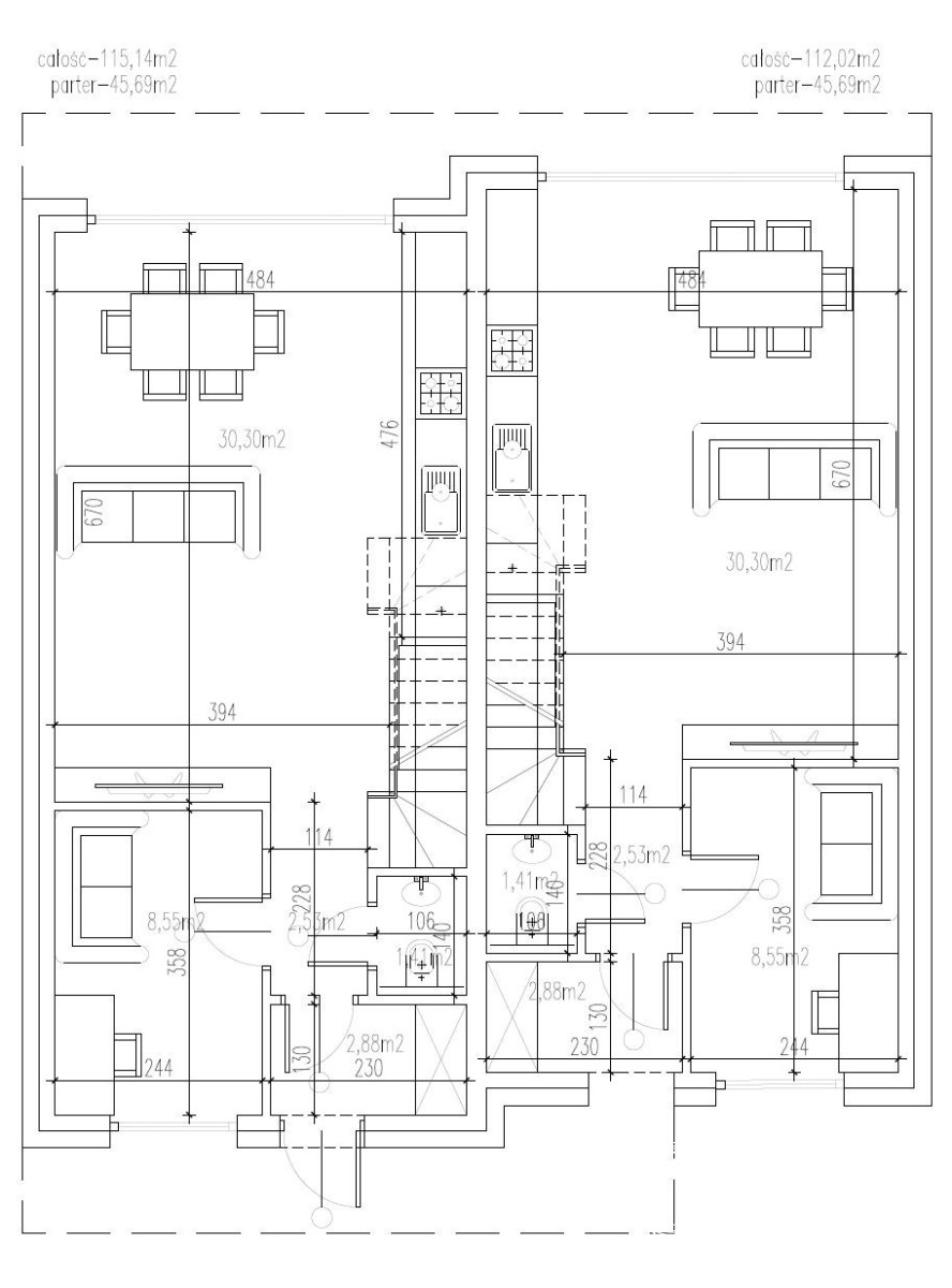Cała Inwestycja składa się z 2 lokali mieszkalnych w zabudowie dwulokalowej.