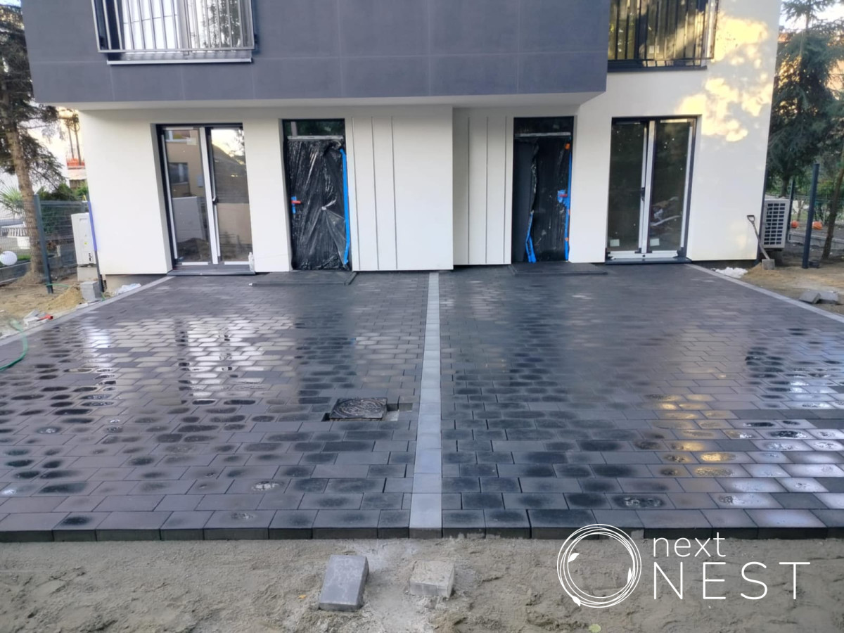 Dom posiadać będzie ogrodzenie panelowe, furtkę i podjazdy utwardzone kostką. Teren wyrównany.