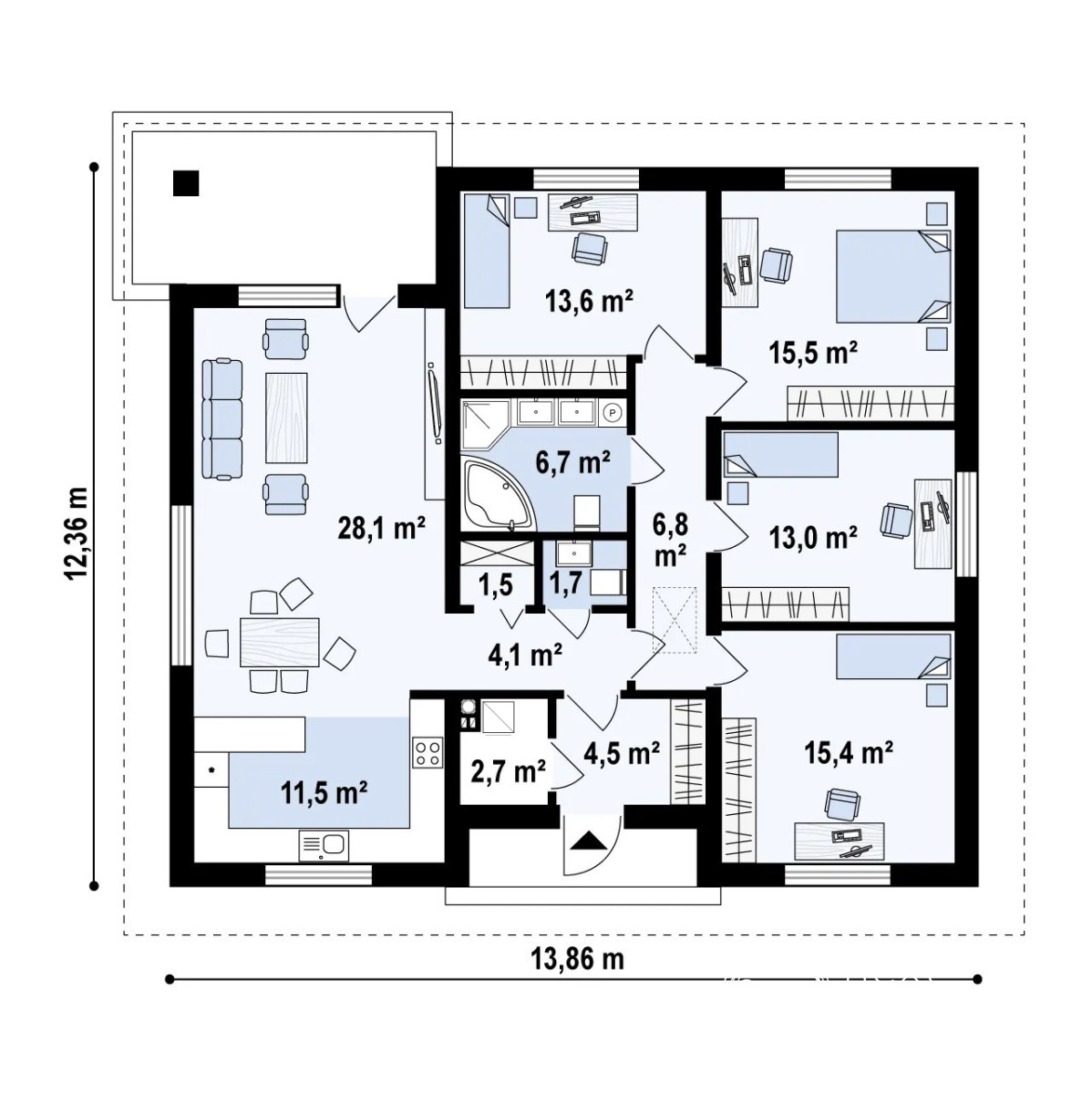 Zapraszam do zapoznania się z ofertą domu PARTEROWEGO, wolnostojącego o powierzchni użytkowej 125,1 m2, na działce o powierzchni około 1000 m2.