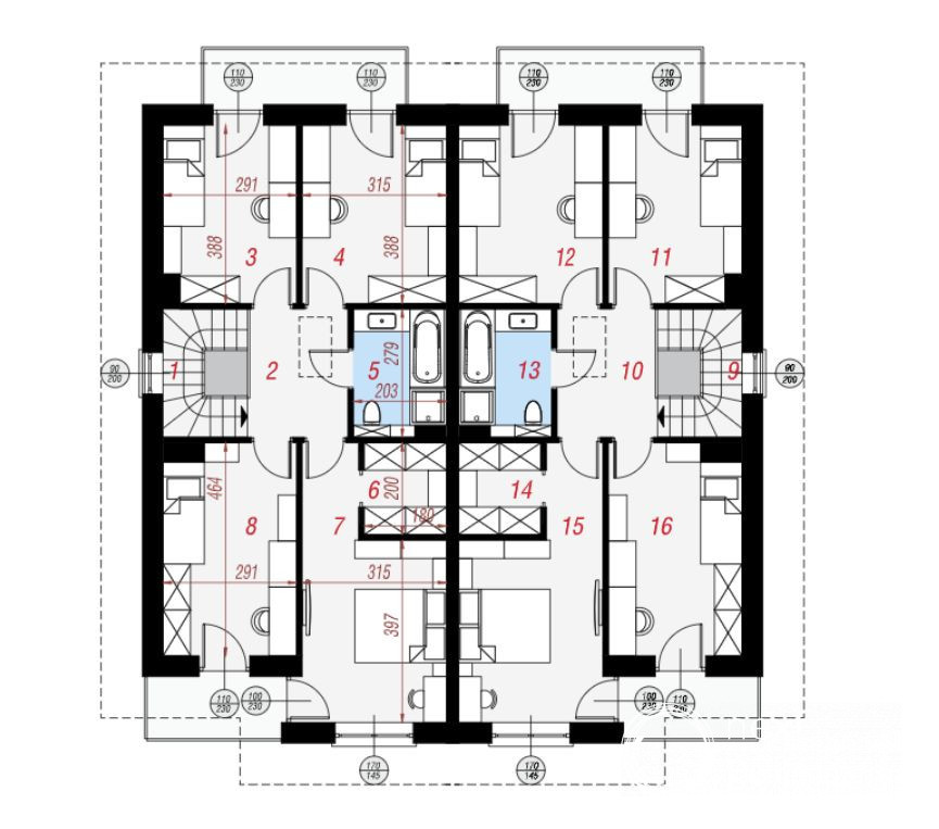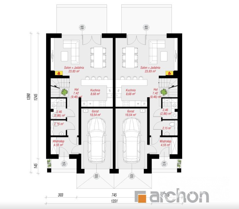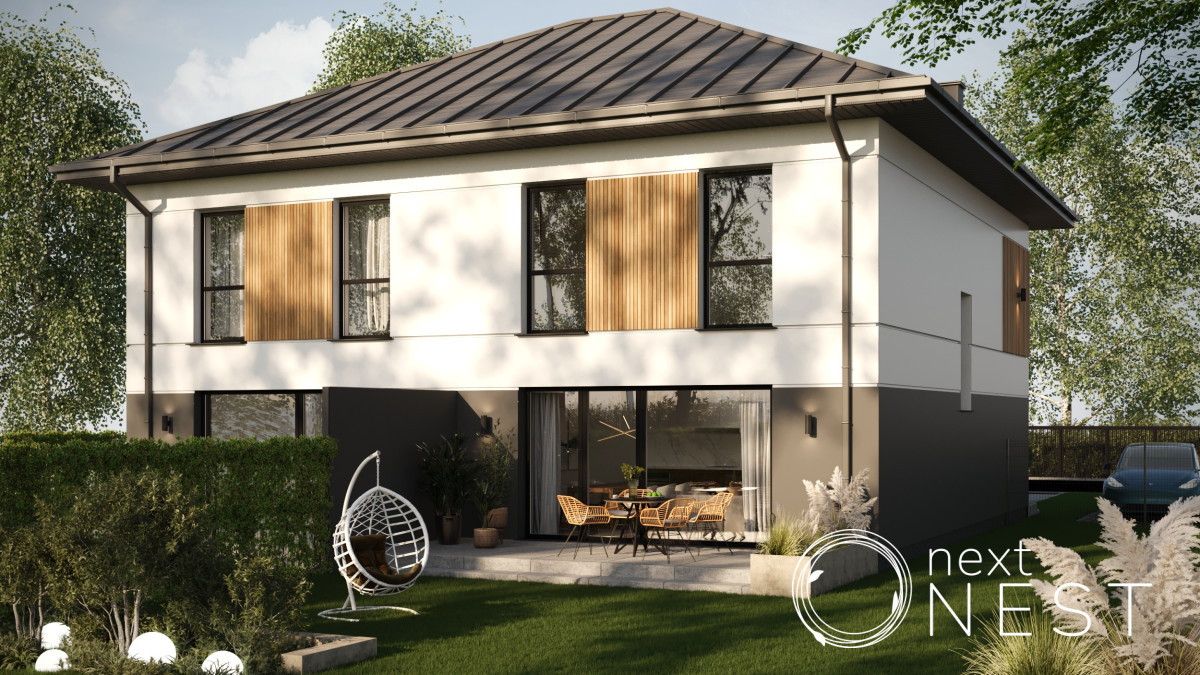 Przedmiotem sprzedaży jest połowa domu jednorodzinnego dwulokalowego w stanie deweloperskim o powierzchni użytkowej 136 m2, na działce o powierzchni 830 m2 do wyłącznej dyspozycji.